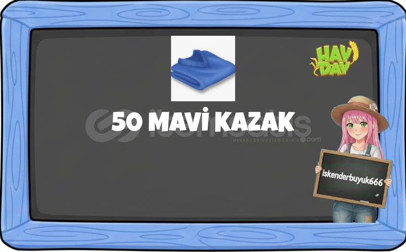 🧶 Hayday 50 Mavi Kazak Satışı 💙✨ Hızlı teslimat ⏱️ • Güvenilir satıcı ✔️ • Stok hazır 📦Sipariş sonrası pazar kurulumunu yapıyorum ve 50 adet Mavi Kazak ürününü 1–5 dakika içinde size teslim ediyorum. Çiftlik görevleri ve üretimler için ideal! 💙🧵