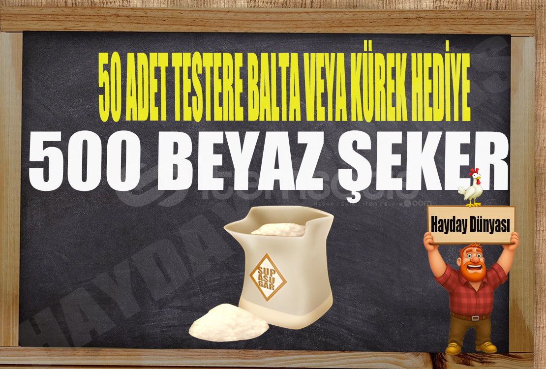 ✅500 ADET BEYAZ ŞEKER(LEVEL 13) 1 ALTINDAN DİZİLİR🎁 Hediye için dilediğiniz Testere,Kürek,Balta hangisiden istiyorsanız 50 adet veriyoruz dilerseniz karışıkta yapabiliriz toplam 50 adet olacak şekilde✅Önce bize oyundaki etiket kodunuzu yazıyorsunuz✅Bize etiketinizi verdikten sonra size arkadaşlık isteği atıyoruz✅Sipariş verdiğiniz malzemelerinizi ürün fa...