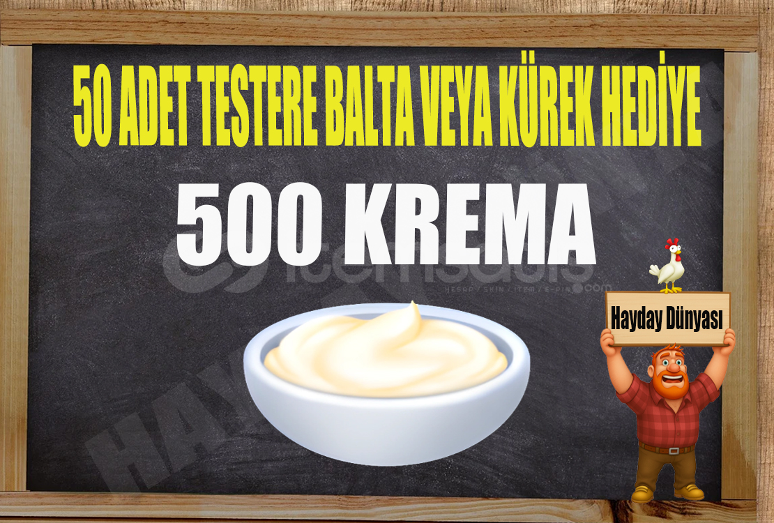 ✅500 ADET KREMA(LEVEL 6) 1 ALTINDAN DİZİLİR🎁 Hediye için dilediğiniz Testere,Kürek,Balta hangisiden istiyorsanız 50 adet veriyoruz dilerseniz karışıkta yapabiliriz toplam 50 adet olacak şekilde✅Önce bize oyundaki etiket kodunuzu yazıyorsunuz✅Bize etiketinizi verdikten sonra size arkadaşlık isteği atıyoruz✅Sipariş verdiğiniz malzemelerinizi &uum...