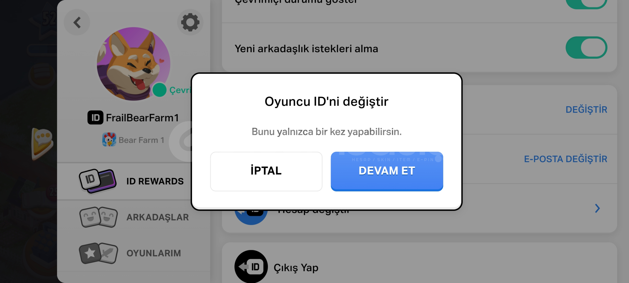 1 KERE SUPERCELL İD DEĞİŞTİRME HAKKI VARDIR