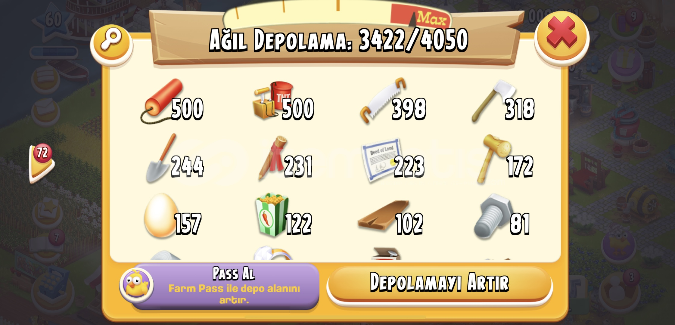 ⚡️+60 LEVEL DEPO ÜRÜN DOLU HESAP⚡️ | HAYDAY