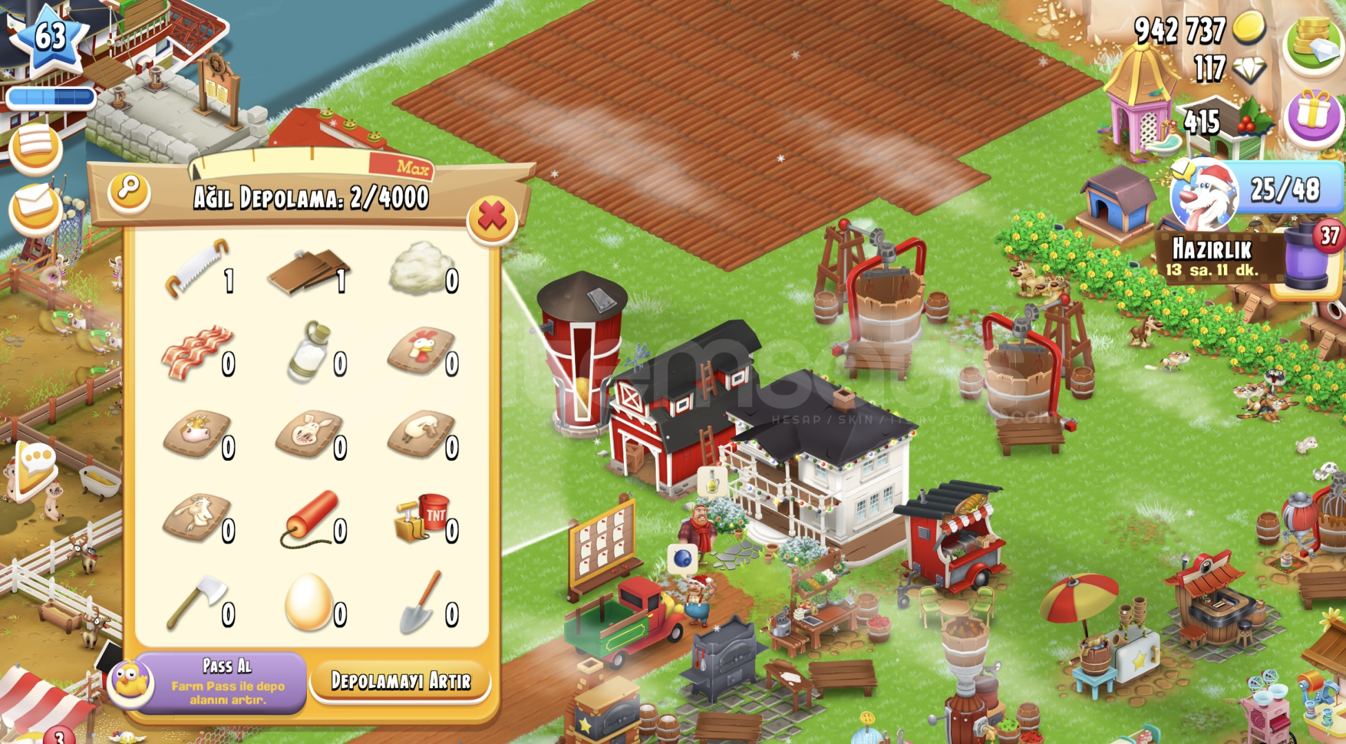 Kendi kullandığım bir hesaptıartık kullanmadığım için satmak istiyorum.Mail kendi üzerime sizin verdiğiniz mail adresiyle değiştiricem.4000 ağıl 1100 ambariçerisinde 1M’e yakın altın 117 elmas varacil satlık