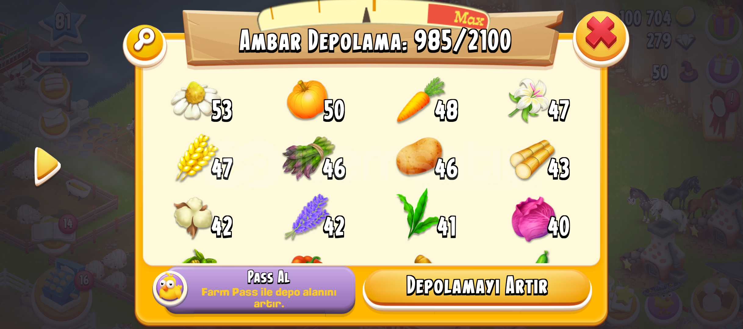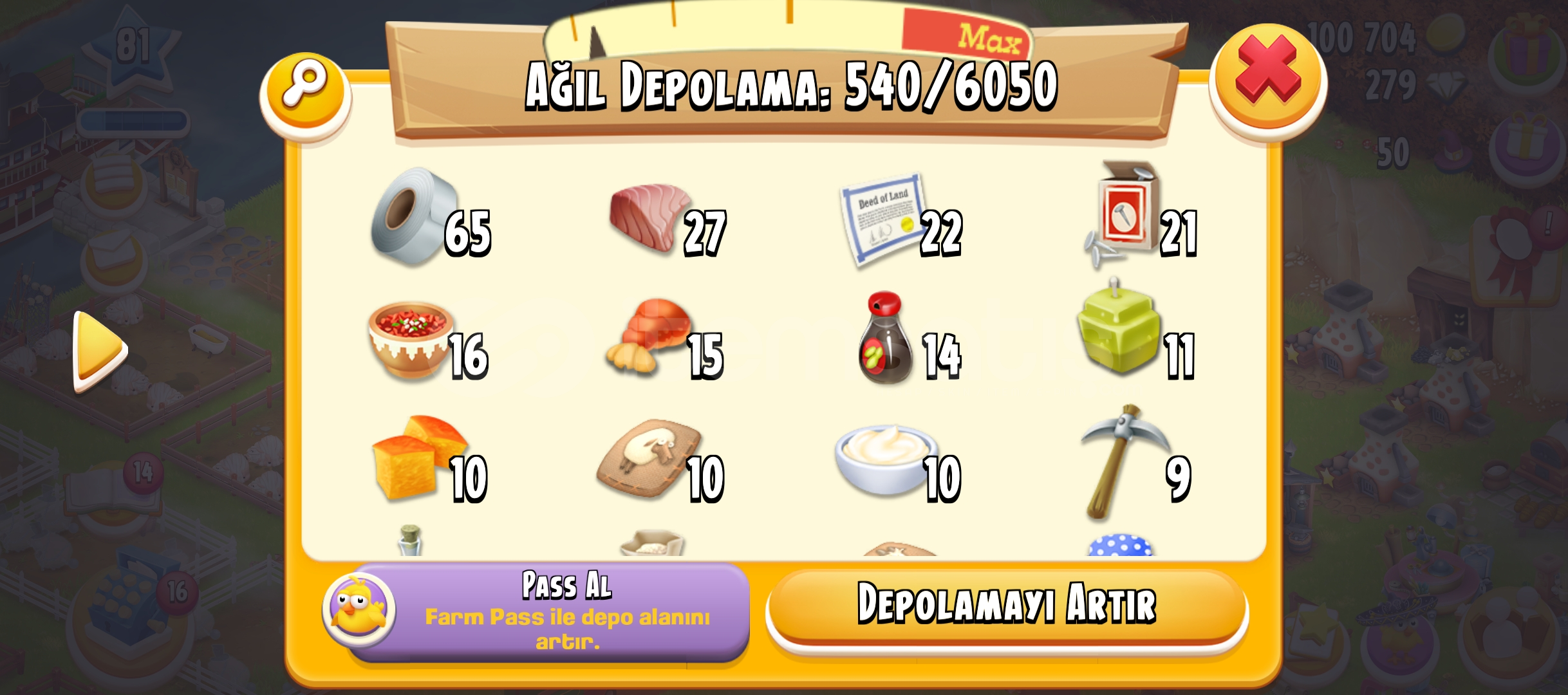 81 LVL 6050 AGİL 2100 AMBAR DEPOLU OYUN
