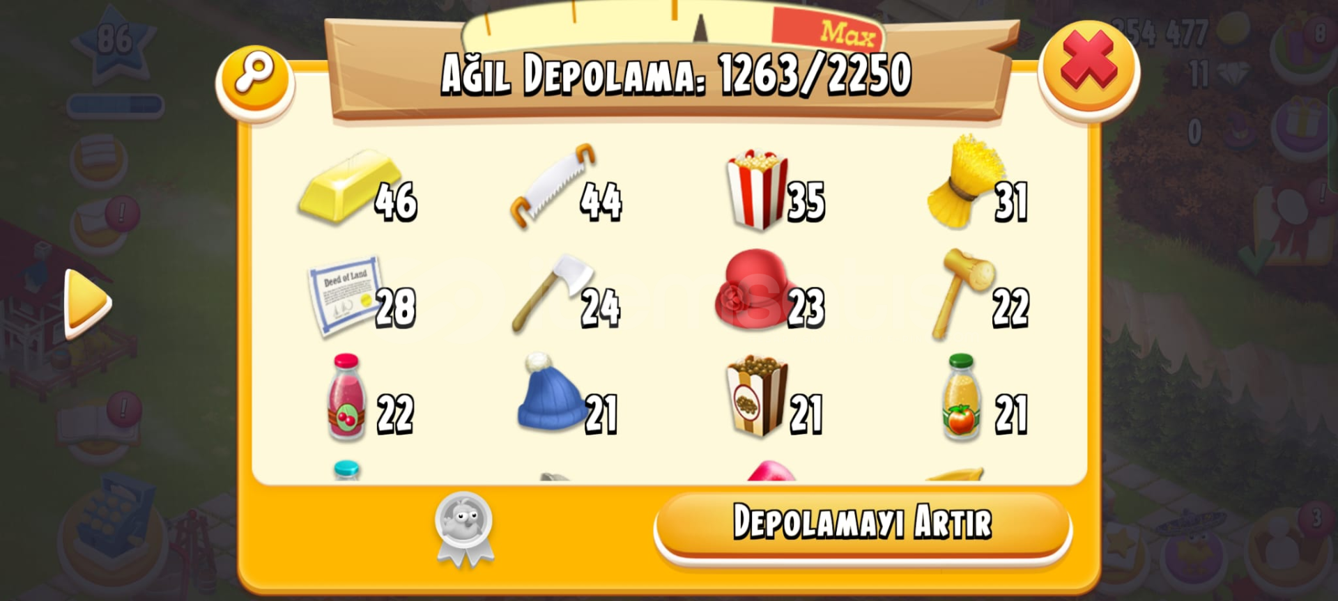 • 86 SEVİYE HAYDAY EMEK HESABI •• 2250 AĞIL •• 2250 AMBAR •• ÇOĞU MAKİNENİN 4 SLOTU AÇIKTIR •• SORMAK İSTEDİĞİNİZ SORU OLURSA DM YOLUYLA SORABİLİRSİNİZ •