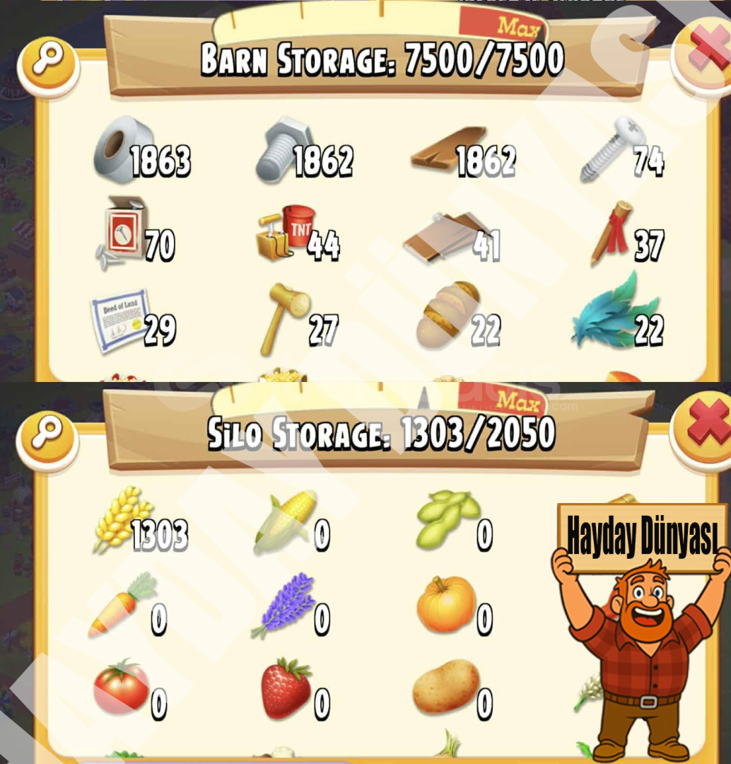 🐓 Hesap Bilgileri🔥 Seviye: 90+🐑 Ağıl: 7500 (Tam dolu, bol malzemeli)📦 Ambar: 2050💰 Coins: 7M+💎 Elmas: 600+🐄 Hayvanlar: Çoğu var🌾 Arazi: Ana bölge tamamen açık, yan bölge kısmen açık🖼️ Not: Görseller temsili olup küçük farklılıklar olabilir ...