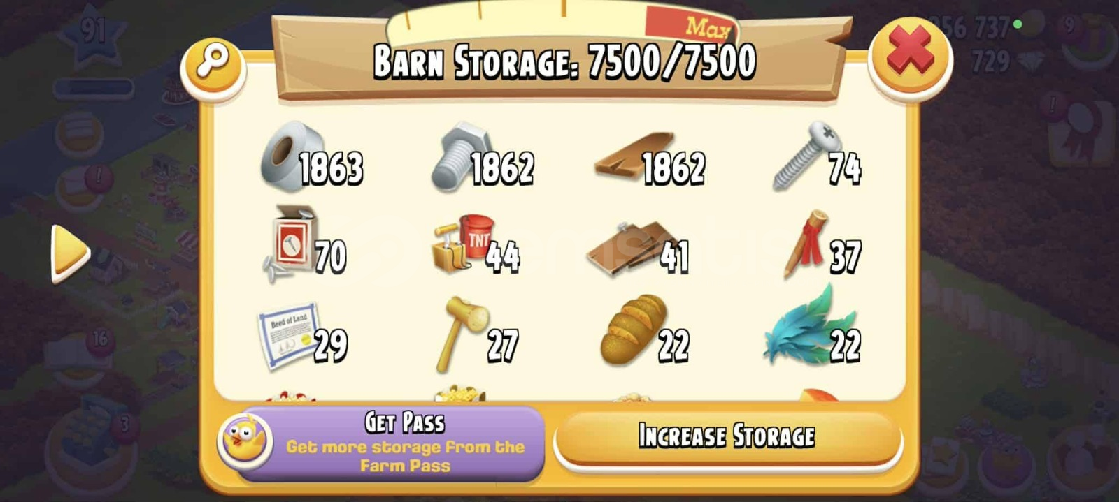 🐓 Hesabın Özellikleri🔥 Seviye: 90+🐑 Ağıl Kapasitesi: 7500 (İçi Ağıl Malzemesi Dolu)📦 Ambar Kapasitesi: 2050💰 Coins: 7M+💎 Elmas: 600+🐄 Bol Hayvanlı🌾 Arazi Durumu: Ana arazi tamamen açık, yan arazinin bir kısmı da açık🖼️ Görseller Temsili: Malzemelerde...