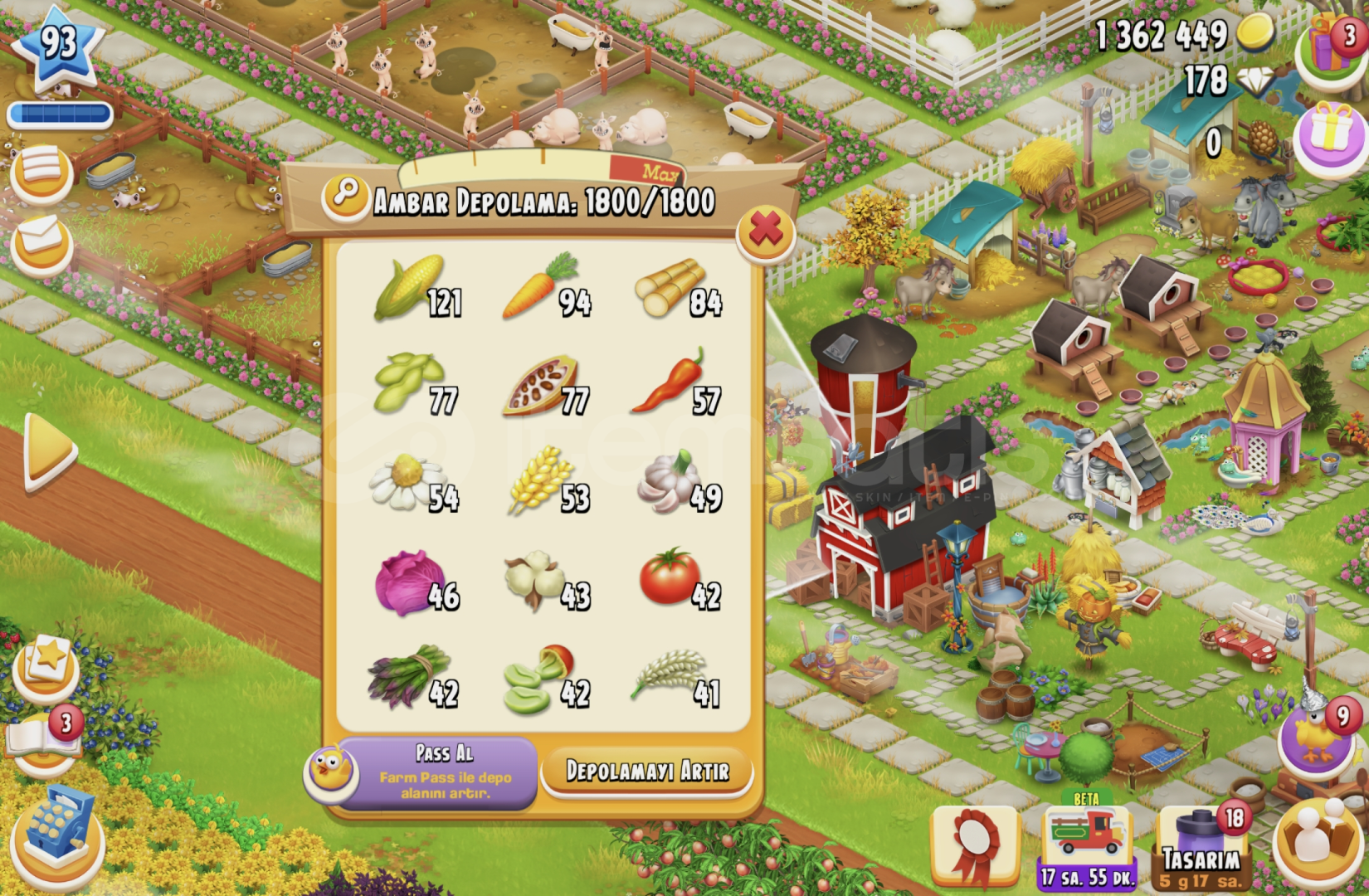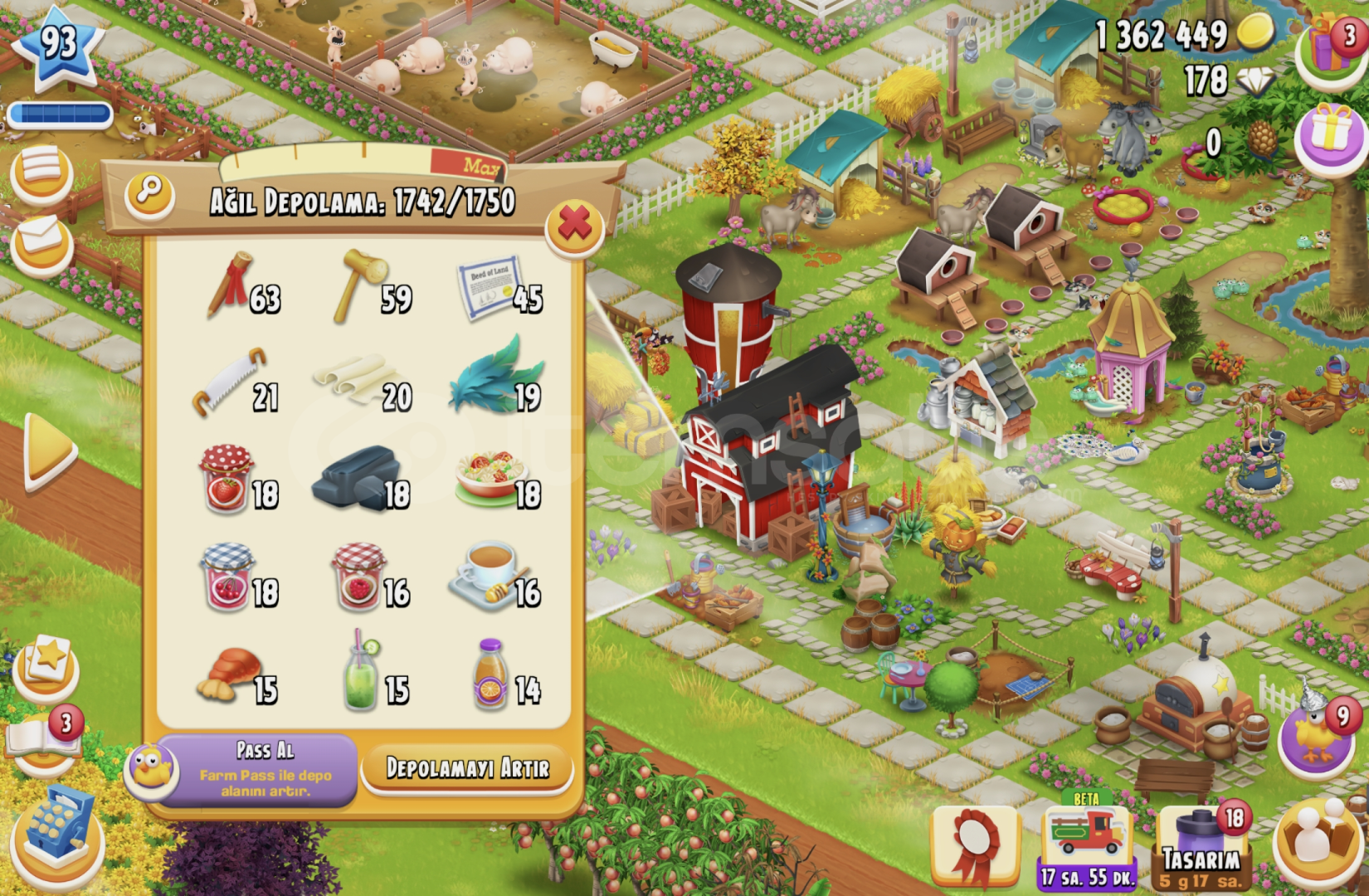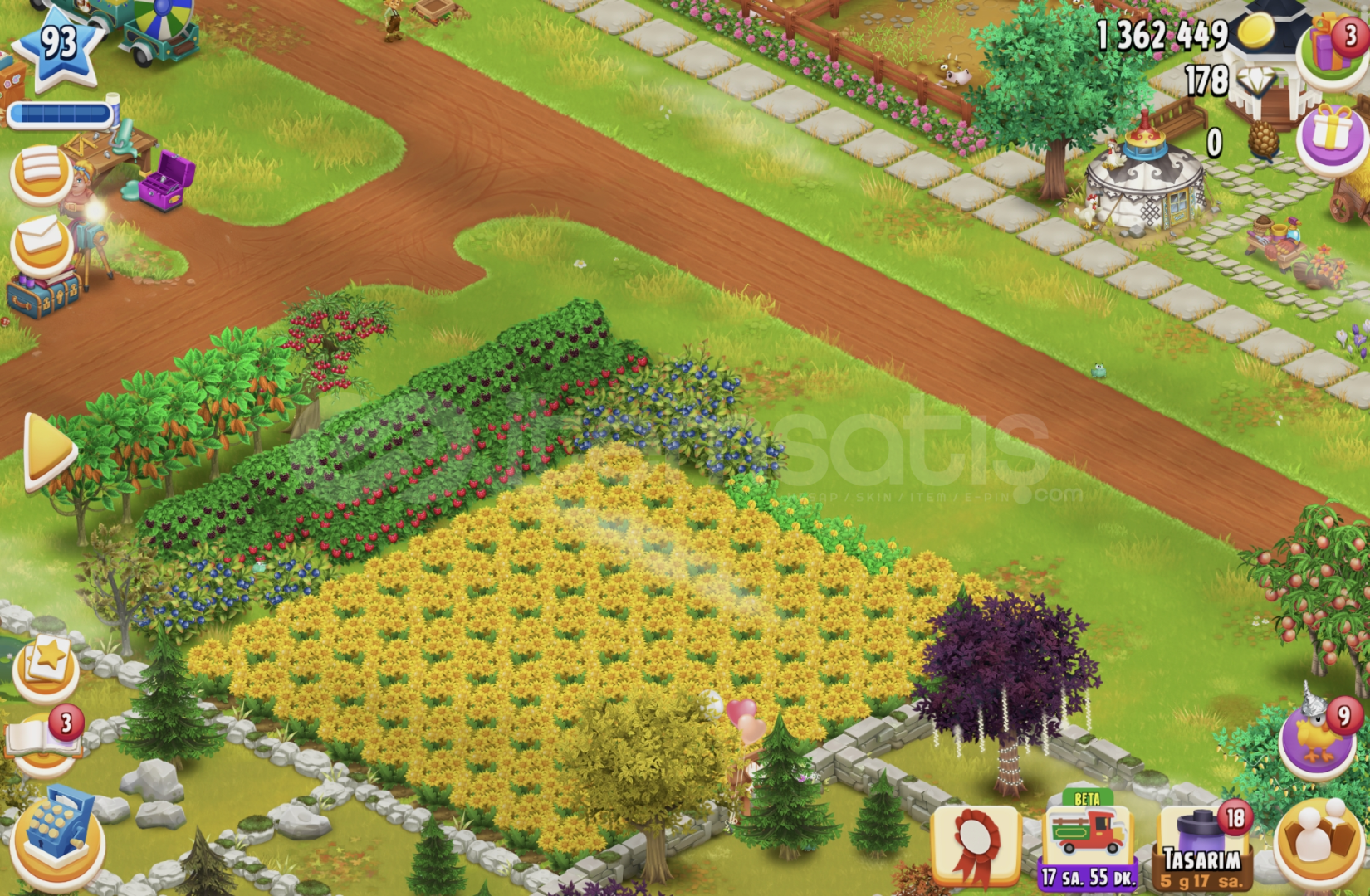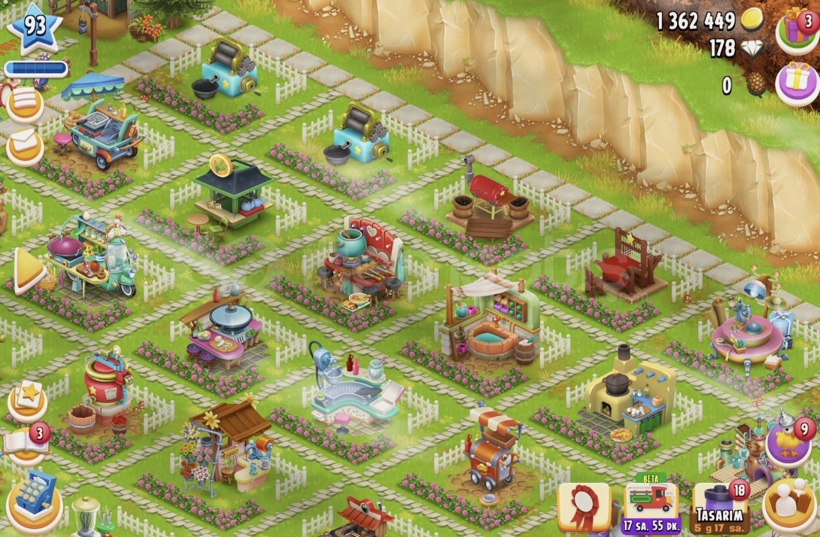93 SEVİYE TÜM MAKİNELER VE ARAZİ AÇIK
