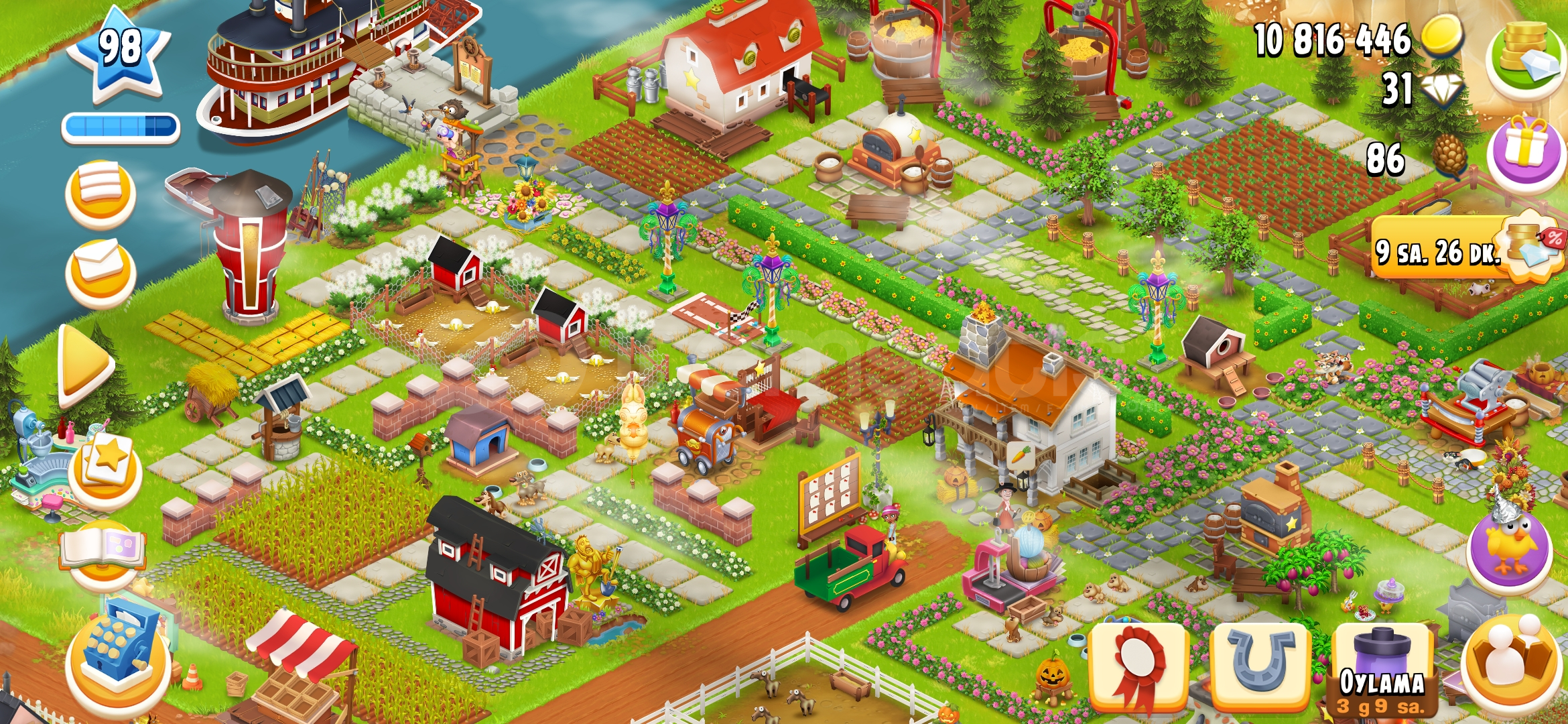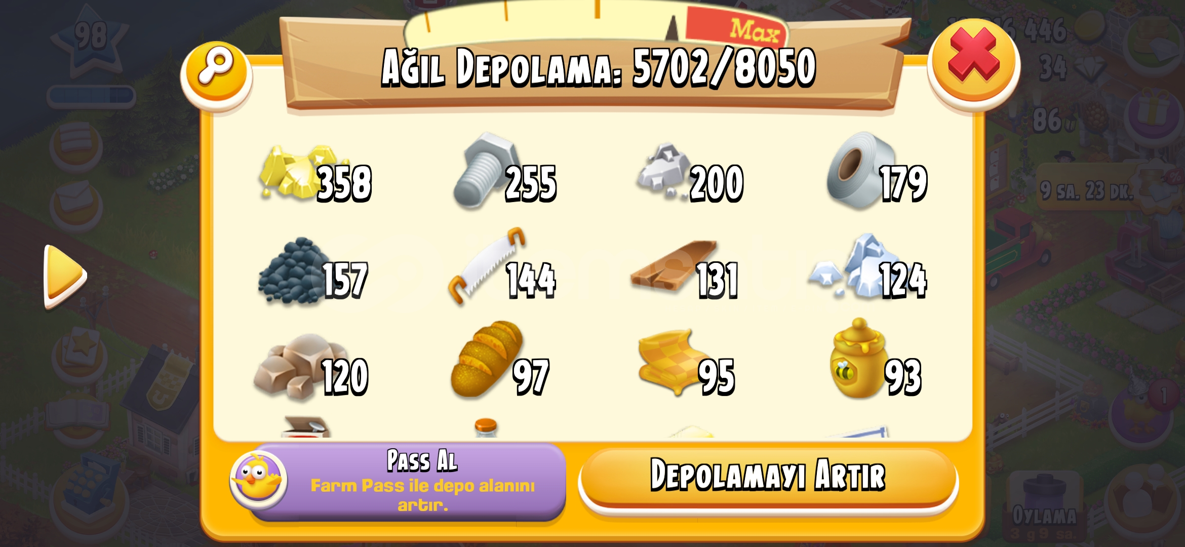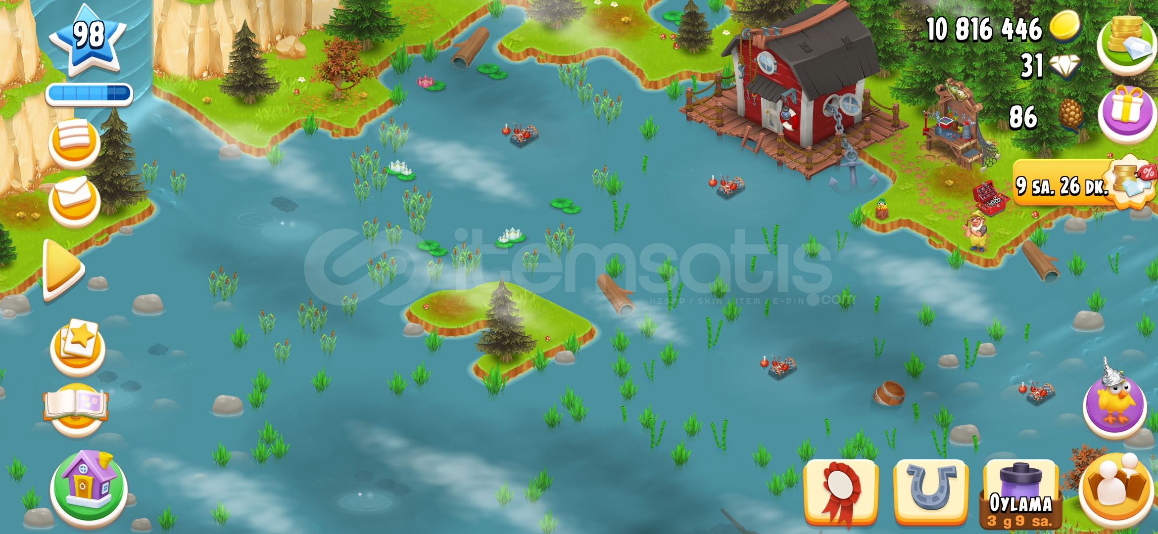 98 seviye, 8050 ağıl ve 2100 ambar kapasitelidir. Hesapta 10 milyon altın ve 30+ elmas bulunuyor. Balık bölgesi güzel, kasaba pek oynanmamıştır ama hayvanlardan biri alındı. Hızlandırıcı deposu doludur. İhtiyaçtan ötürü satılık. Bu güzel çiftliğin deposu sizi yeterince oyuna bağlayacaktır 😊🙏