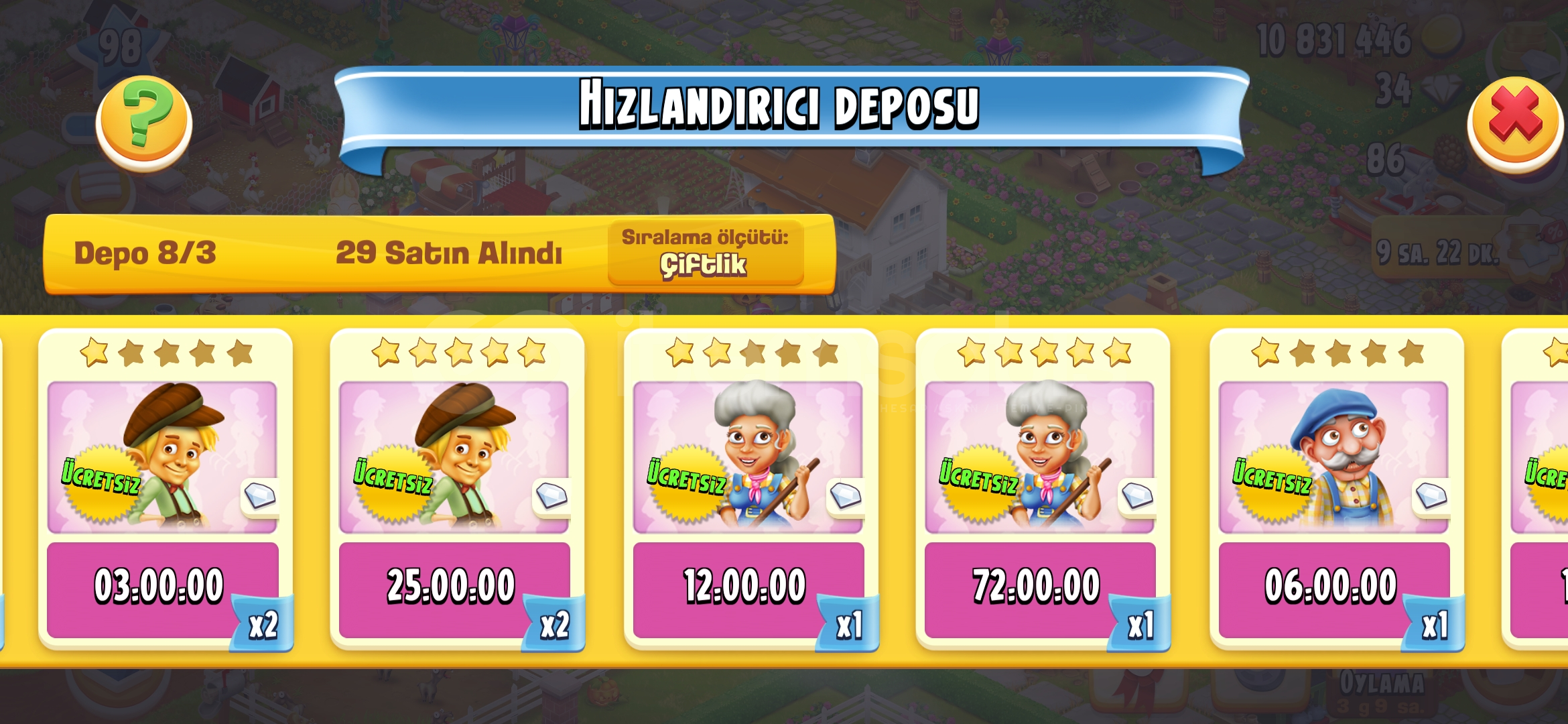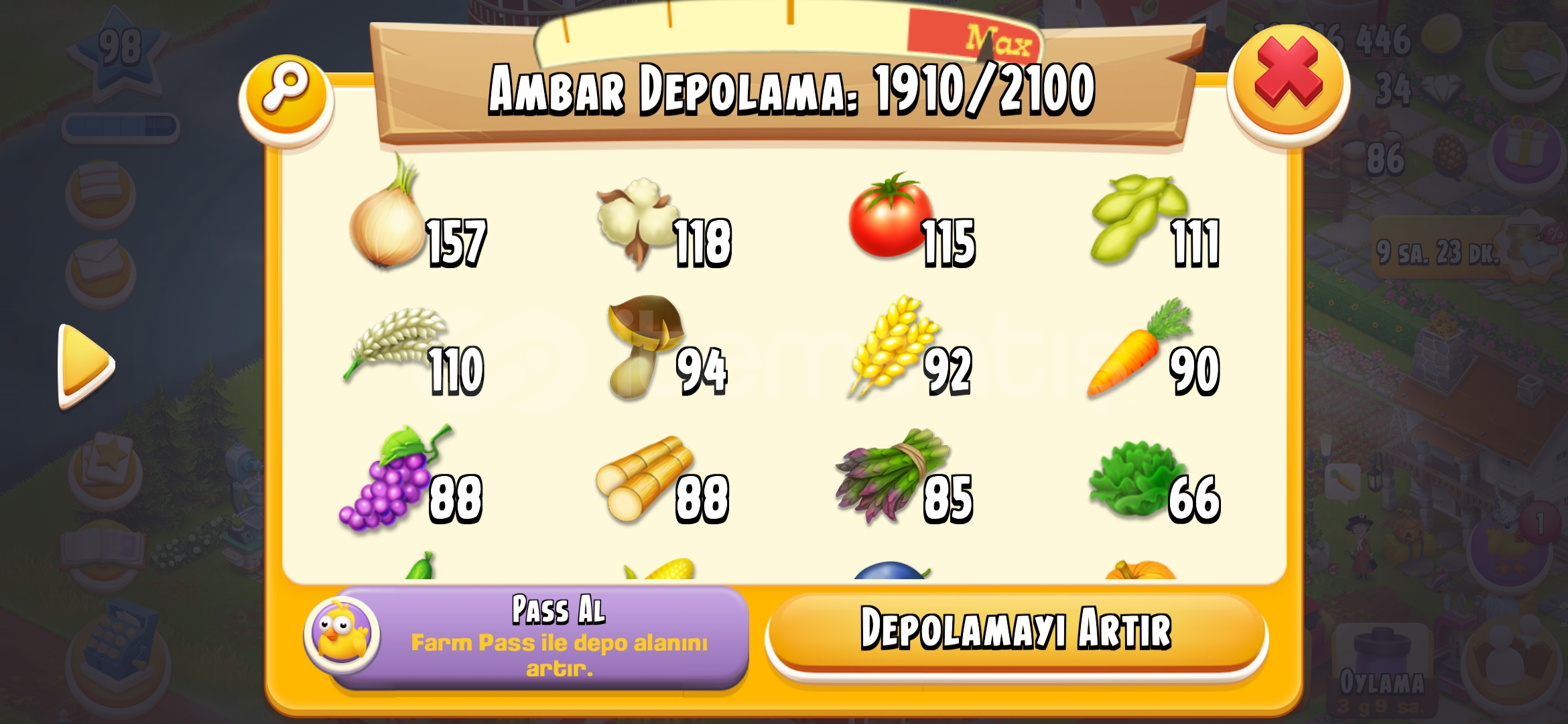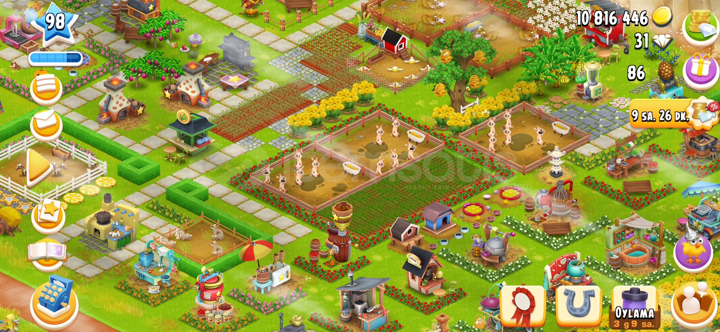 98 seviye, 8050 ağıl ve 2100 ambar kapasitelidir. Hesapta 10 milyon altın ve 30+ elmas bulunuyor. Balık bölgesi güzel, kasaba pek oynanmamıştır ama hayvanlardan biri alındı. Hızlandırıcı deposu doludur. İhtiyaçtan ötürü satılık. Bu güzel çiftliğin deposu sizi yeterince oyuna bağlayacaktır 😊🙏