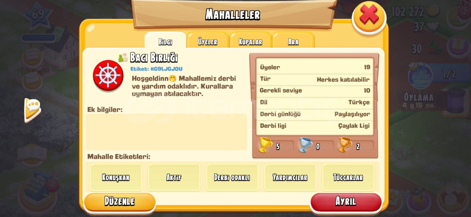 Hesap 69 seviyedir alanları genişletilmiştir ihtiyaçtan uyguna satıyorum.Ağıl 950, Ambar 1050