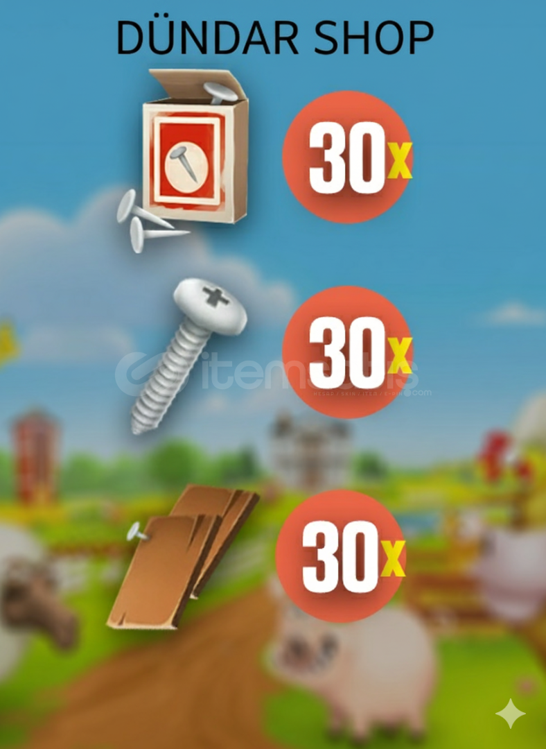 Hay Day Ambar Yükseltme Malzemeleri Satışı 🛠️📦 Bu İlanı Satın Aldığınızda:İlan resminde gördüğünüz arazi yükseltme malzemelerini teslim alacaksınız.✔️ 89 adet ambar malzemesi, tarafımızca arkadaş eklediğimiz hesabın dükkanından 1 altına satışa sunulacaktır.🔒 Güvenliğiniz Önceliği...