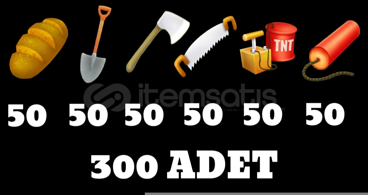 50 TESTERE50 BALTA50 KÜREK 50 TNT50 DİNAMİT50 EKMEKTOPLAMDA 300 ADET ÜRÜN VERECEĞİNİZ OYUN ETİKETİNE AKTARILIR