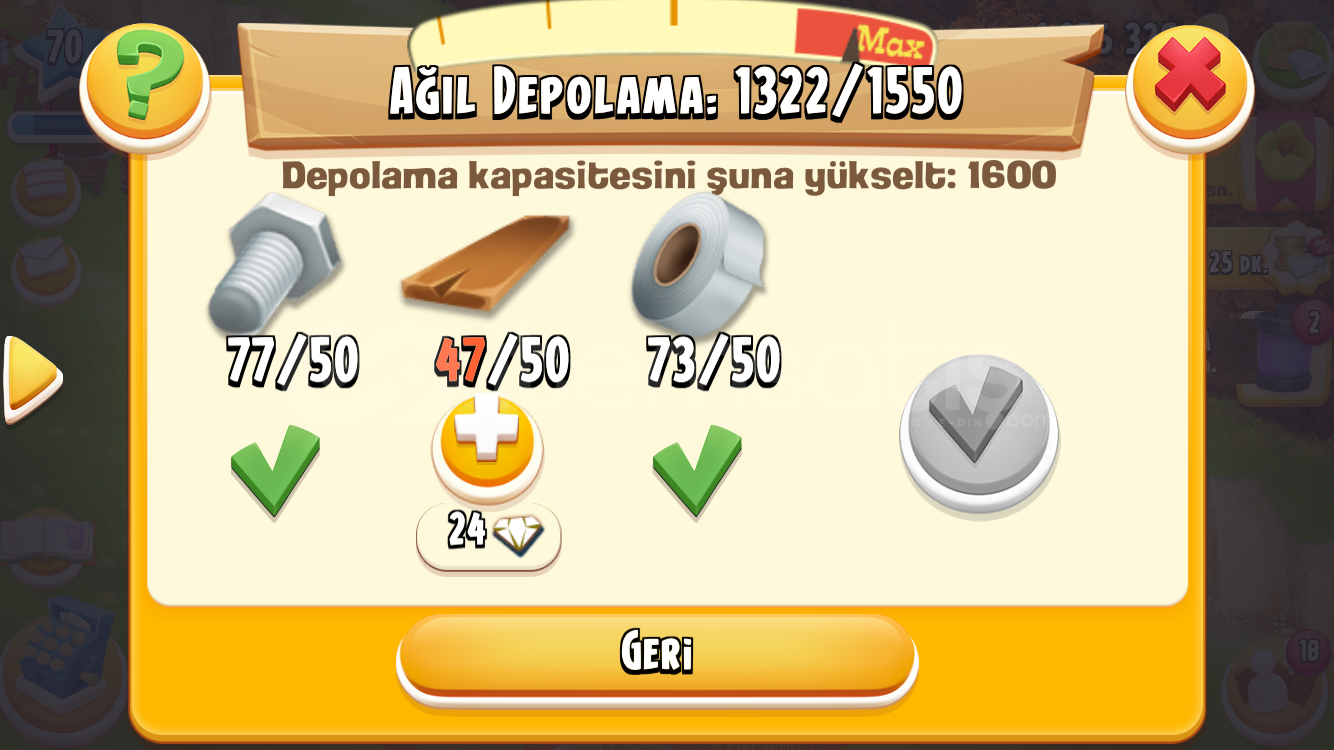 (Ağıl) Deposu: 1322 / 1550 (Ambar): 1489 / 1600 Full düzenli çiftlik – makineler kurulu ve çalışır durumda 1.056.000+ altın28 elmas Tüm üretim binaları açık Çiftlik tasarımı düzenli ve kullanışlı Hiçbir ceza / ban geçmişi yoktur Supercell ID devri sorunsuz yapılırHesap tamamen bana aittir.