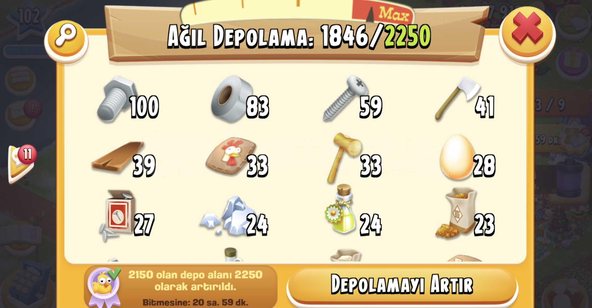103 level olmak üzere ağıl ambar dolu farm pass aktif