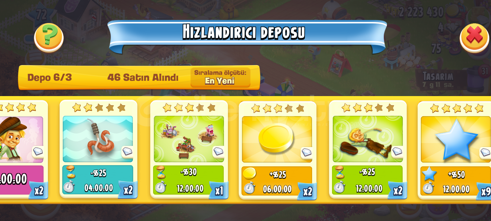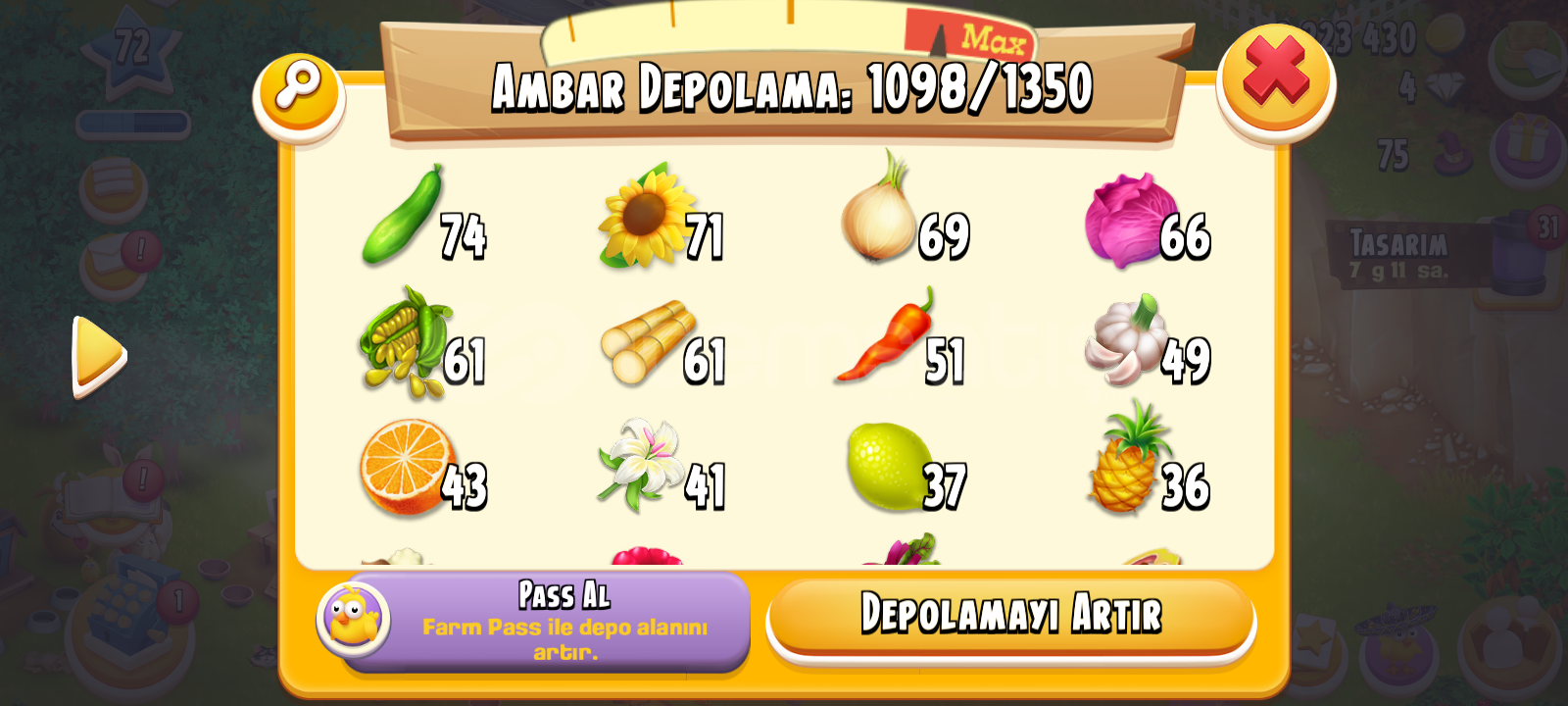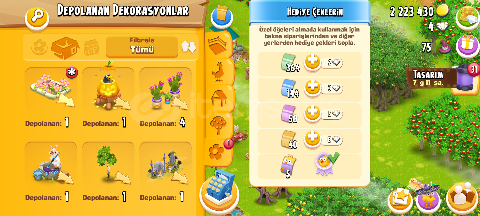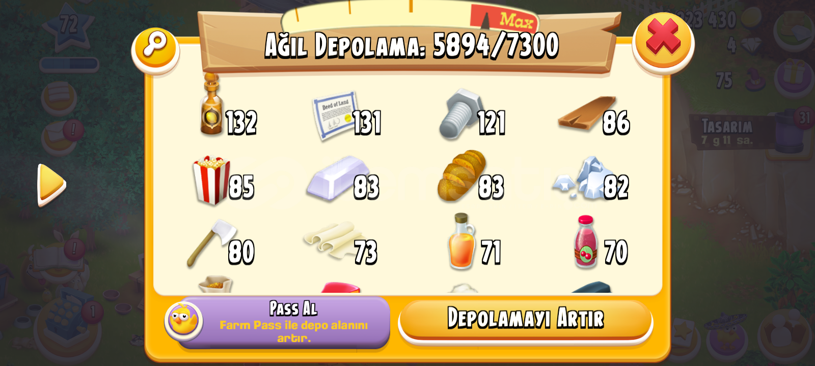 Öncelikle hoş geldiniz hesabın içinde 2m milyon küsur altın vardır 30 adet cadde üzeri dukkan slotu var butun makineler nerdeyse 8,9 olarak açıktır yüklü şekilde elmas harcanmış bir hesaptır el oyunu dur 2 adet 25 saat tom 9 adet 12 saat %50 XP arttırıcı ve nicesi bir sürü hayvan çeki balik bölgesi cok geniş ıstakoz ve ördek yeri Max açık ağıl 7300 ambar 1350 dir hesap tam geliştirmelik bir hesaptır simdiden alana hayırlı olsun