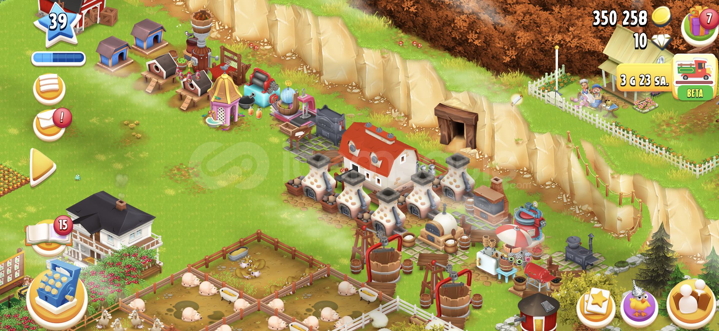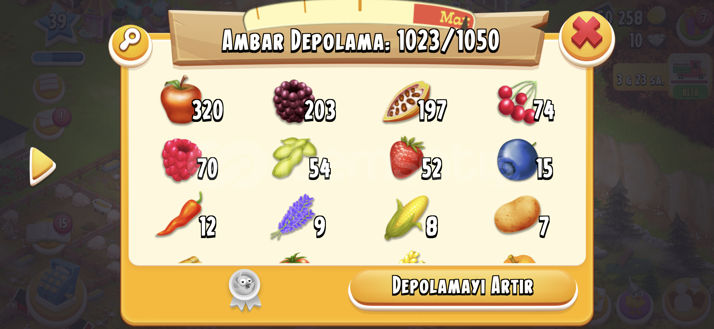 hayday 39 seviye 1550 agil 1050 ambar depolama alanina sahip,350k parali hesap