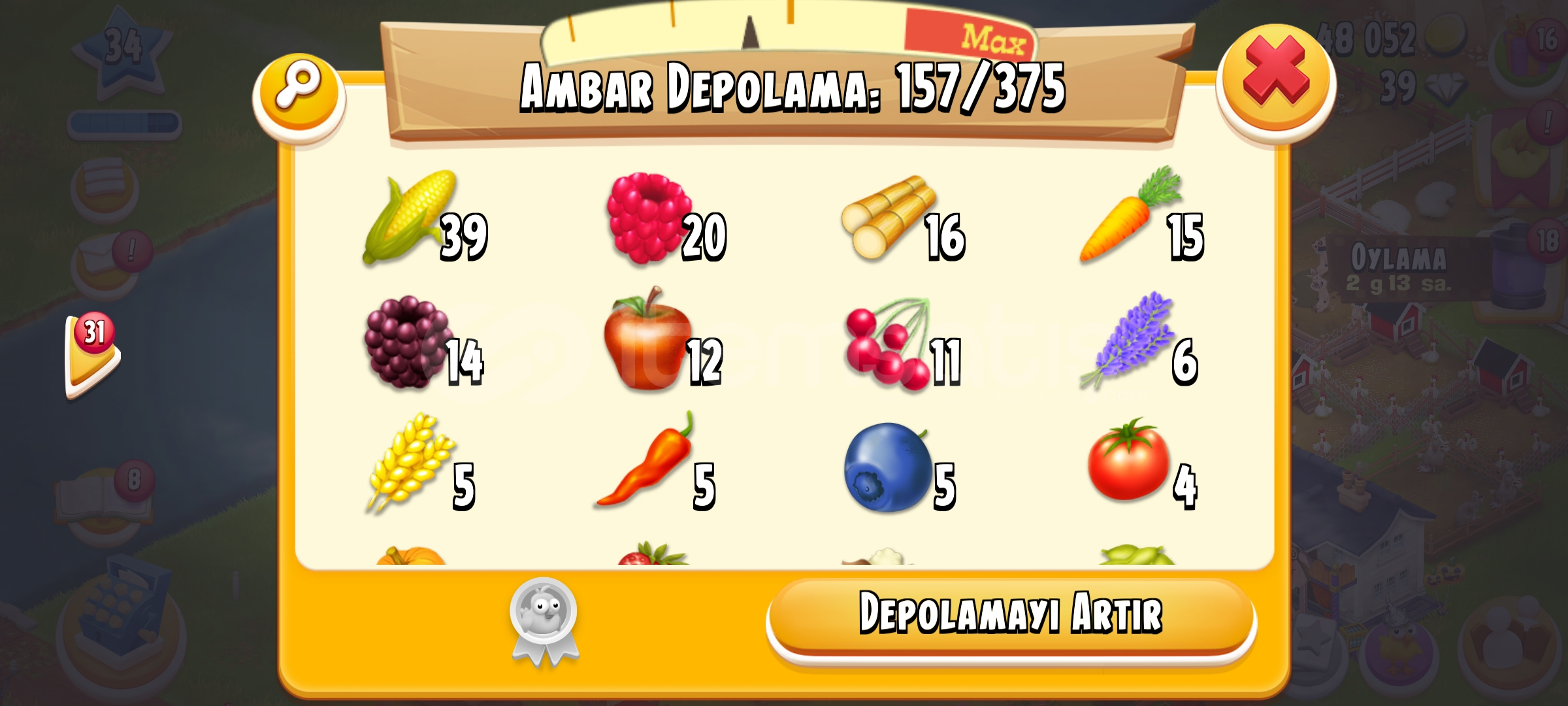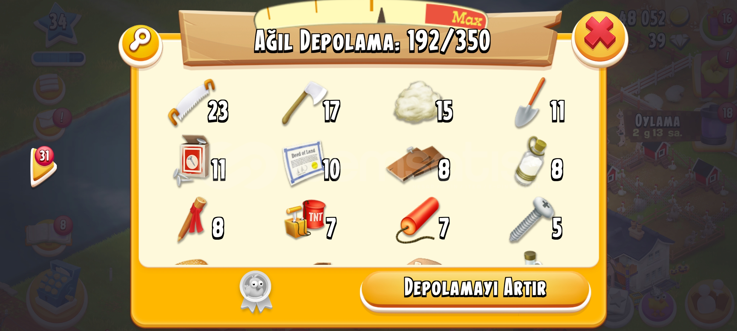Hesap 34 seviyedirAgıl 350Ambar 375Herşey açıktır
