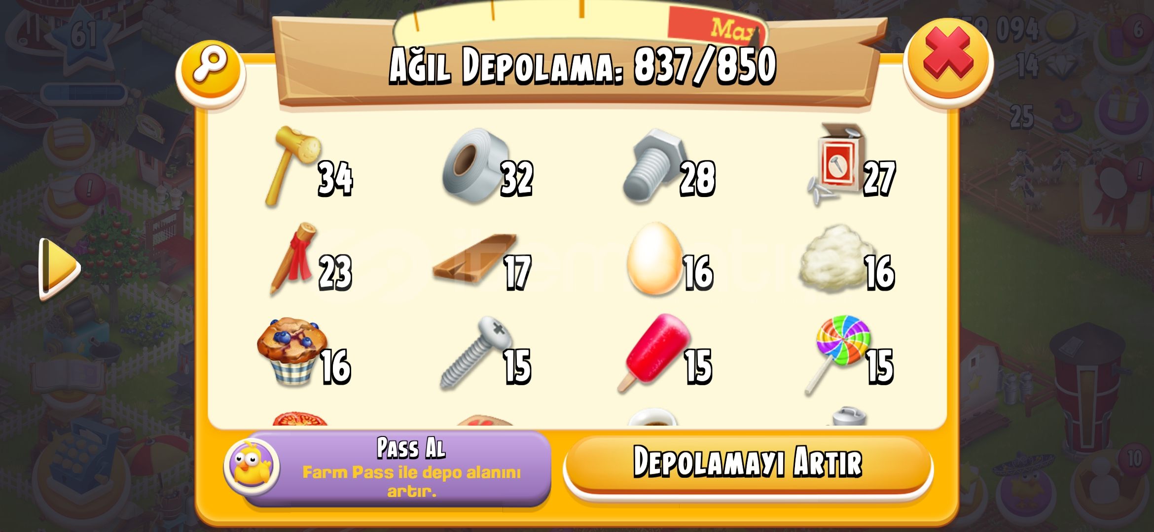• 61 seviye Dolu emek hesabı