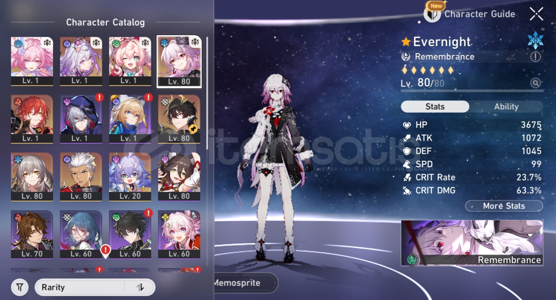 Hesabımda limited karakter olarak:-E0S1 CASTORICE E0S1 EVERNIGHT E0S1 HYACINE E0S0 CYRENE ve free limited karakter olarak: Archer Danheng Permansor Terrae vardır.