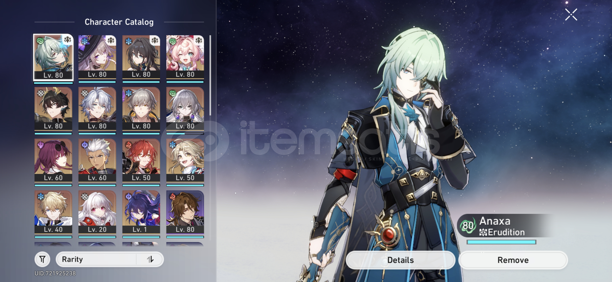 Hesaptaki 5 yıldızlar görsellerde verilmiştir.Limited character ve fate character bannerinden garanti pity durumundadır.E3S0 The HertaE0 PhainonE0 HyacineE0 KafkaE0S0 BronyaE0 anaxaE0 ruan mei