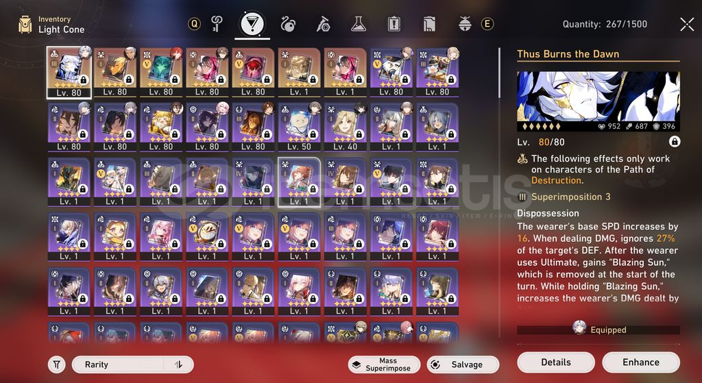 İçerisinde E6 S3 Phainon var. 100 dilek hakkı var ve yakında Phainon geldiğinde S5 yapılabilir. Karakter bannerında 49 pity var ve rate up var. Light cone bannerında 45 pity var ve rate up yok.