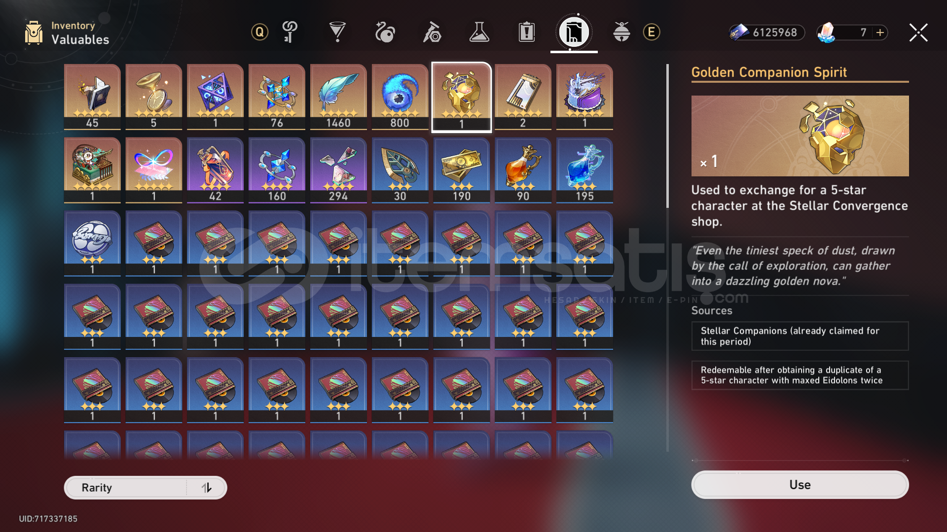 Hesapla ilgili sorularınız varsa lütfen sorun. Mydei E1, Welt E2, Himeko E3, Bronya E1 seviyesindedir.Rate up yoktur. Pity 20dirMAIL DEĞİŞİMİ YAPILACAKTIR. PAZARLIK OLUR AMA LÜTFEN BİR ÖĞRENCİYLE PAZARLIK YAPTIĞNIZI BİLEREK PAZARLIK YAPIN