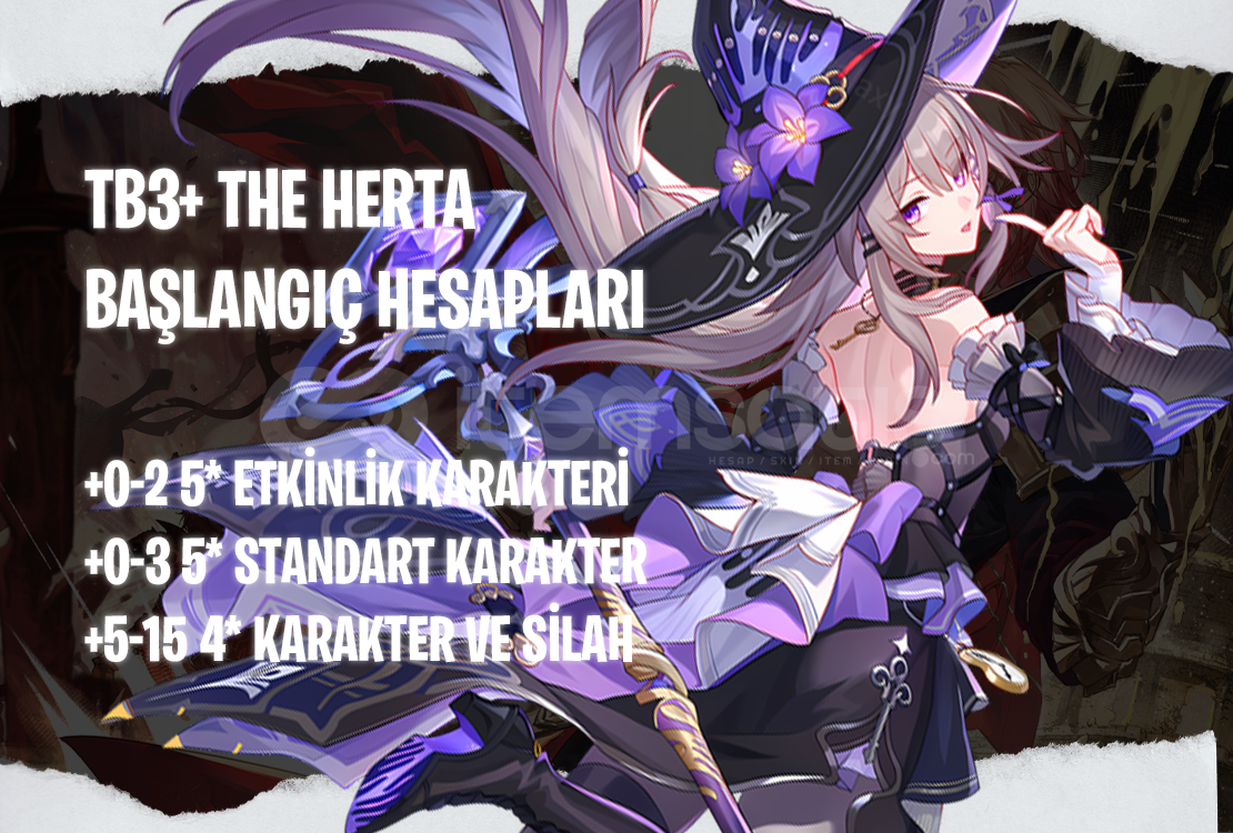 Bu ilanı satın aldığınızda TB3+ seviyesinde içerişinde The Herta bulunan bir hesap tarafınıza iletilecektir.Hesapların içerişinde 0-3 adet 5* standart karakter içerebilir.Hesapların içerişinde bir miktar Steallar Jade bulunabilir.Tüm hesaplarımız garantilidir  ve alım sonras eposta veya kullanıcı adı ş...