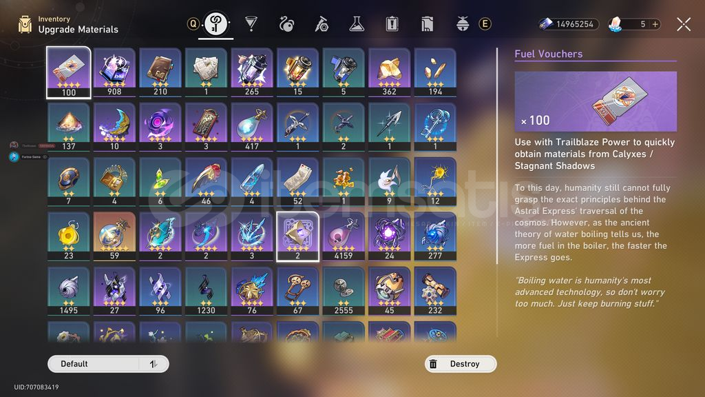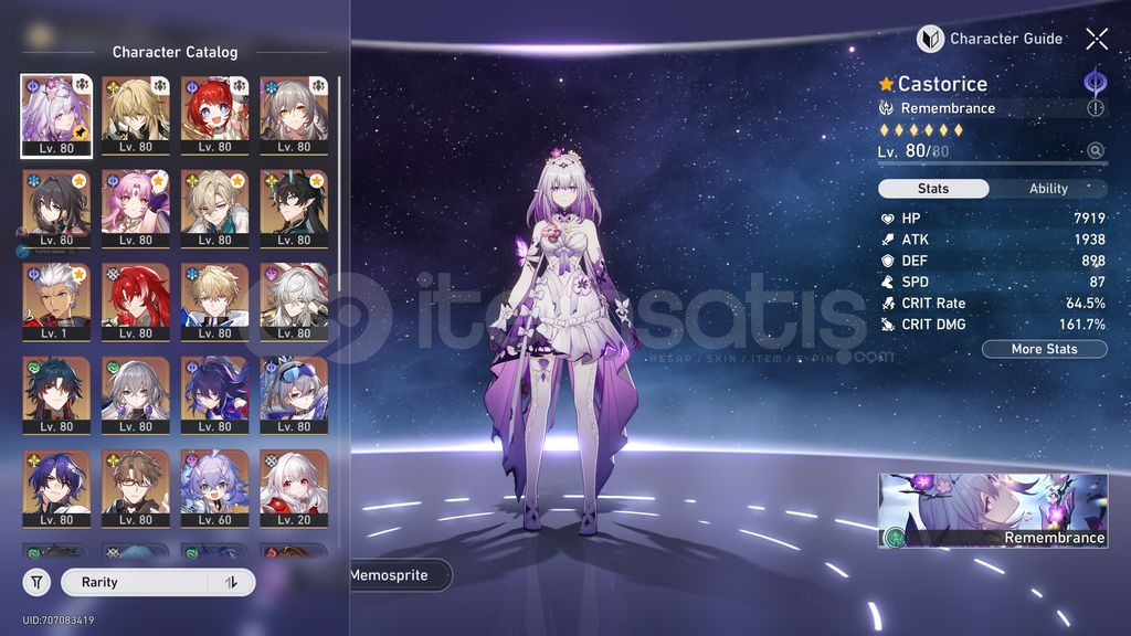 Pazarlık YapabilirizE0 Castorice + BisE0 LuochaE0 TribbieE1 Ruan MeiE0 Fu Xuan + BisE1 EventurineE0 Dan Heng Imbibitor LunaeE0 ArcherE0 ArgentiE2 GepardE0 Jing YuanE1 BladeE2 BronyaE0 SeeleE1 Silver WolfE0 Dr.RatioE0 WeltE1 BailuE0 Clara13xE6 4 Yıldızlı55 PityFate Banner Rate up 10 pityÇoğu 5 yıldızlı kasılıdır çok rahat edersinizHesapta linkli bir bağlantı yoktur. Oyuna girdiğinizde hesabı tamamen üzer...