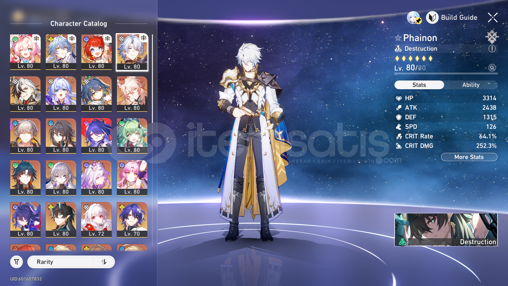 PAZARLIK OLUR T.C KİMLİK ONAYLI SATICIYIM TÜM SORUMLULUKLARI KABUL EDİYORUM %100 GARANTİLİ HESAPTIR.TL 70 America serverında çok rahat end game dönebilen main yapmalık bir hesap, hesap oyun ilk çıktığından beri oynanmıştır. Çoğu karakter kasılı ve tüm endgameleri fulleyen bir hesaptır.Pitysi 45tir. Character redemption yapılmamıştır ve Light cone redem...