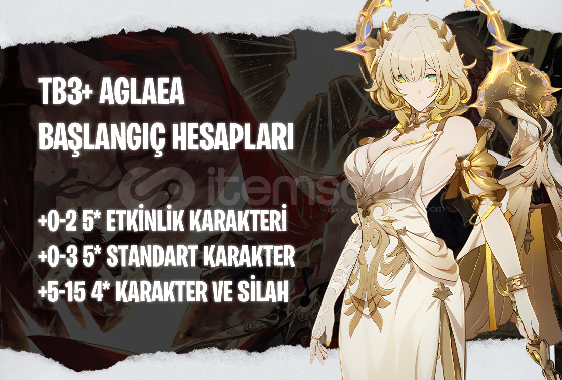 Bu ilanı satın aldığınızda TB3+ seviyesinde içerişinde Aglaea bulunan bir hesap tarafınıza iletilecektir.Hesapların içerişinde 0-3 adet 5* standart karakter içerebilir.Hesapların içerişinde bir miktar Steallar Jade bulunabilir.Tüm hesaplarımız garantilidir  ve alım sonras eposta veya kullanıcı adı şif...