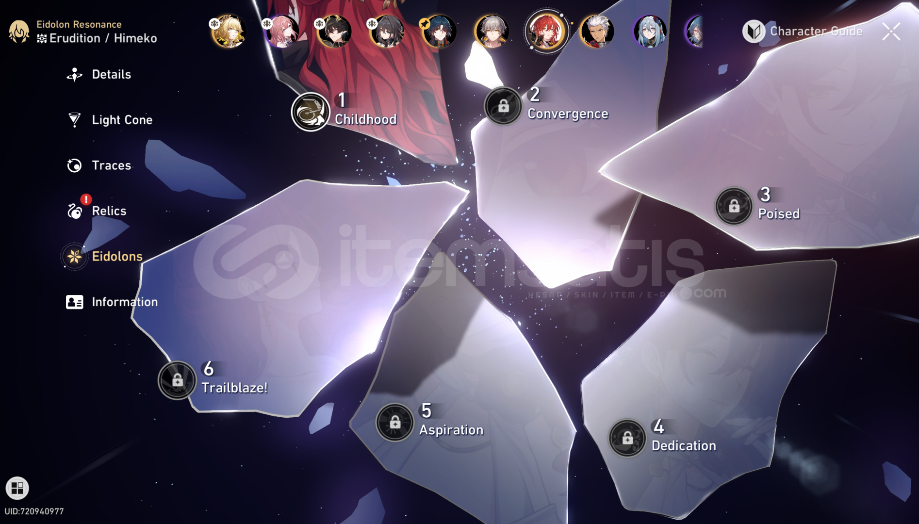 Aglea, Blade, Dan Heng 5 yıldız, Archer, Ruan Mei ve Himeko var. Himeko E1