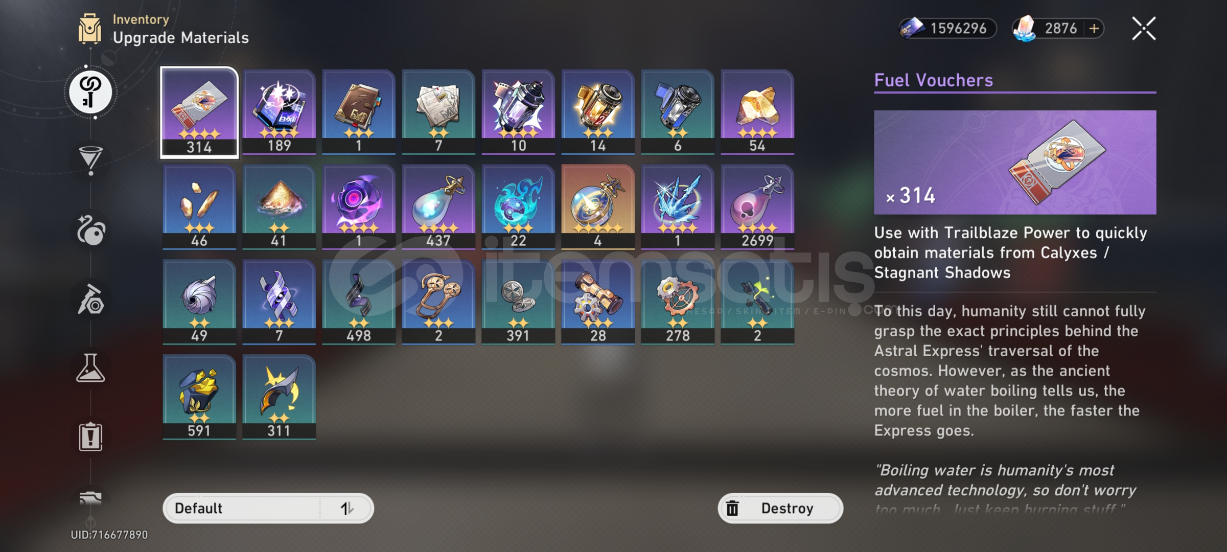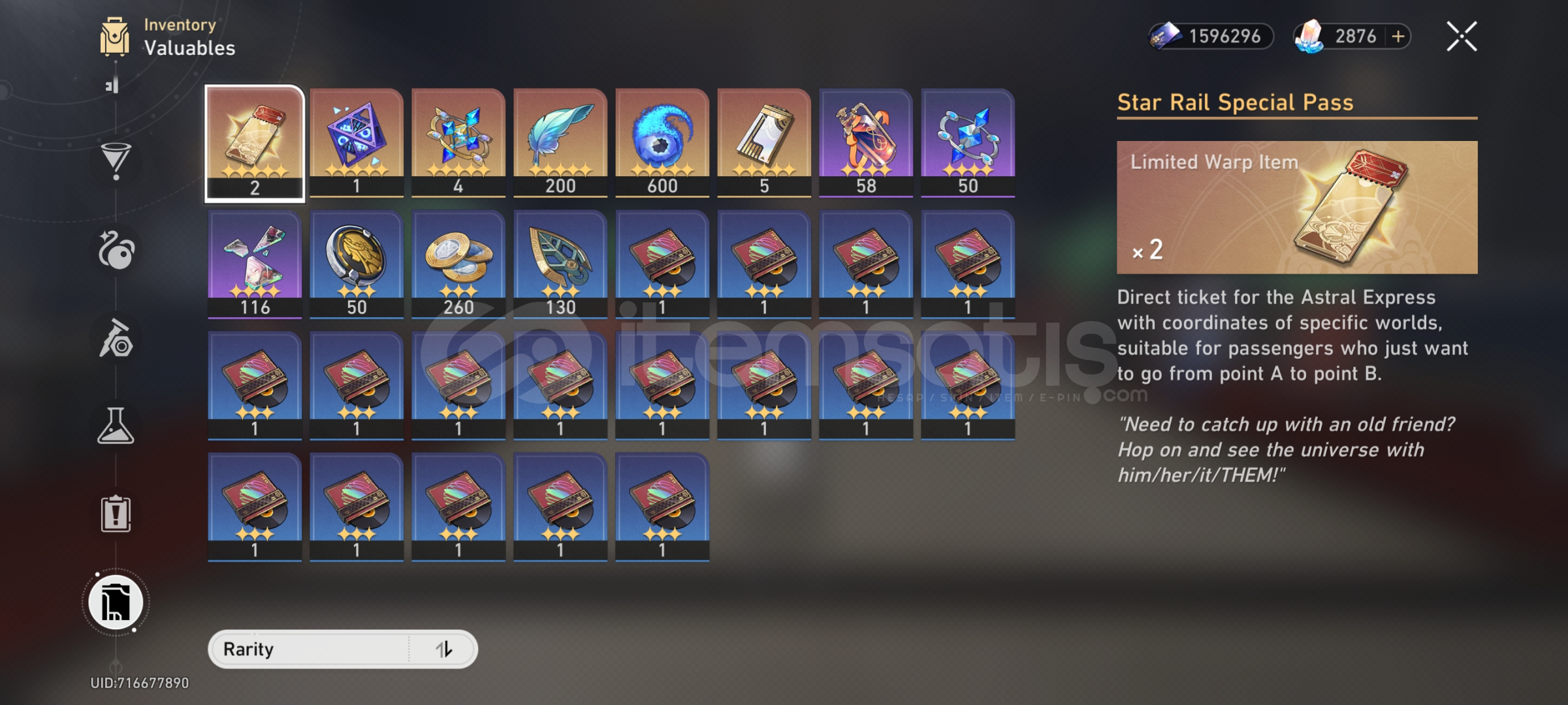Hesabın bağlı olduğu emailin uzantısı -rambler-dirHesabın hikayesi LoufuAçılan mapteki sandıkların bir kismı toplandı. Toplanacak bir sürü sandık var.5 yıldızlı lightcone olarak Bailunun ve herta shop lightcone vardır.25 wish var