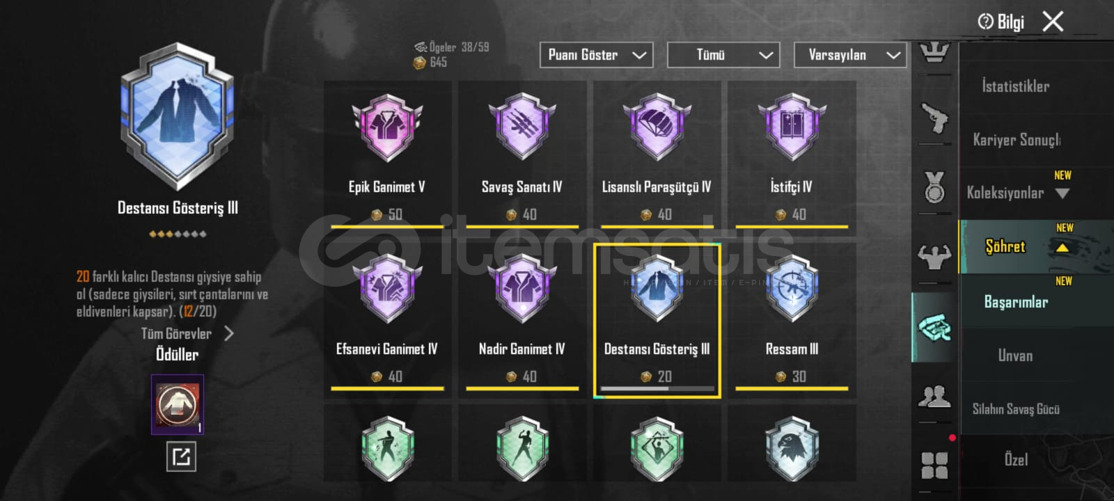 PUBG Mobile satılık hesaplar İtemSatış oyuncu pazarında. %100 güvenli şekilde PUBG Mobile hesap satın al.