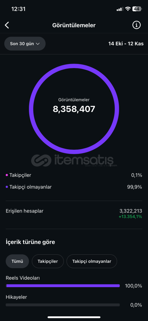 • Son 30 Günde +8.5 Milyon erişilen hesap bulunuyor.