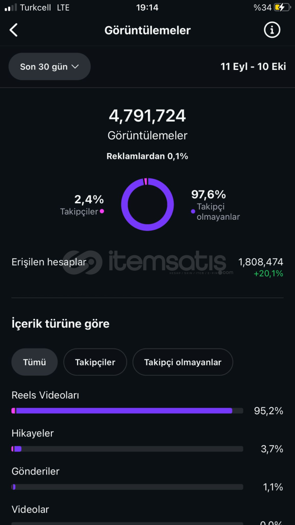 4K TAKİPÇİLİ AYLIK5M İzleyicili Hesaptan Reklam