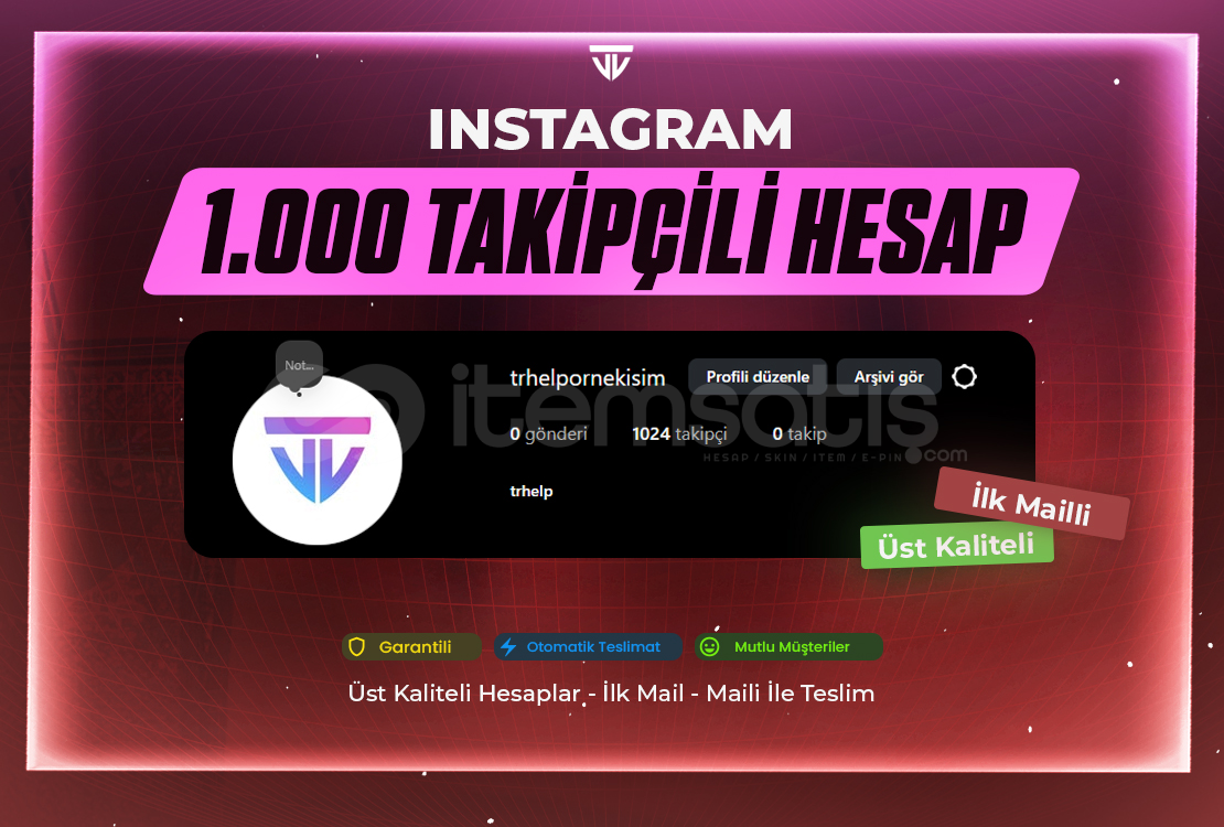 1.000 Takipçili Hesap | Üst Kaliteli - İlk Mail