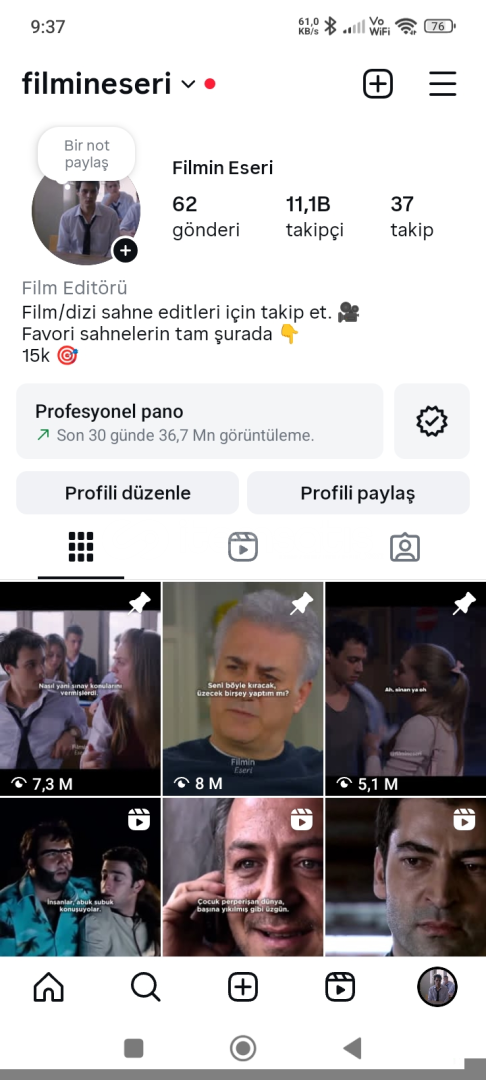 Tamamen organik hesaptır herhangi bot basımı vs. Olmamıştır konseptli hesap daha çok büyütebilirsiniz. 62 gün boyunca hergün 1 rells paylaştım. BU FIRSAT KAÇMAZ!