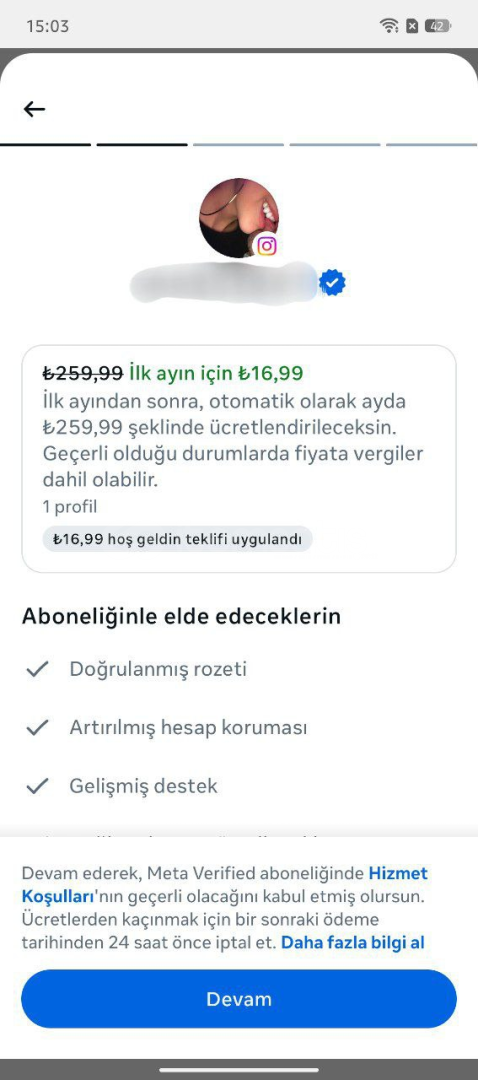 • META VERIFIED için alacak kişinin, abonelik satın aldıktan sonra: (Hesapta herhangi bir değişiklik yapılmalıdır.)