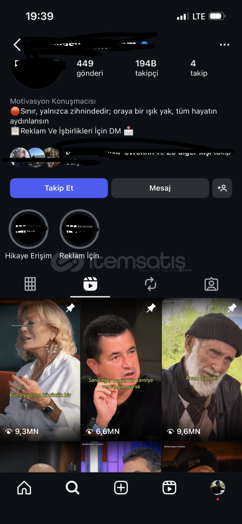 194 Bin Takipçili Organik Motivasyon Sayfası2 Yılı Aşkındır Aktif kullanıyorum para ihtiyacım için satıyorum.Ciddi alıcıya istatistikleri atabilirim.Elit kitleli sayfa.Fazlasıyla ünlü, psikolog, prof dk takipçileri beğenileri mevcut herşey şeffaf.