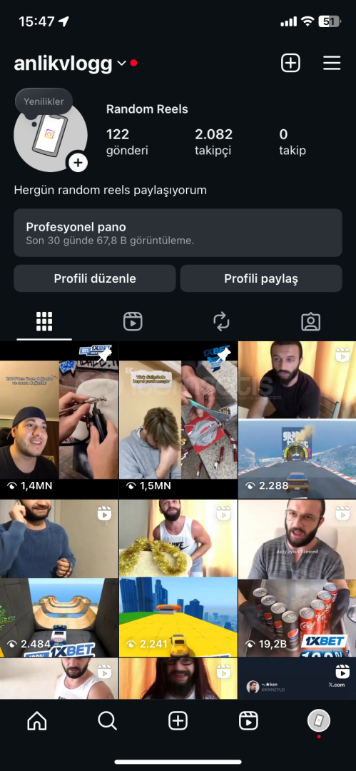Hesapta 2 tane 1.5 milyon izlenen video bulunmaktadır. Keşfeti açık hesaptır. Sorular için iletişime geçebilirsiniz
