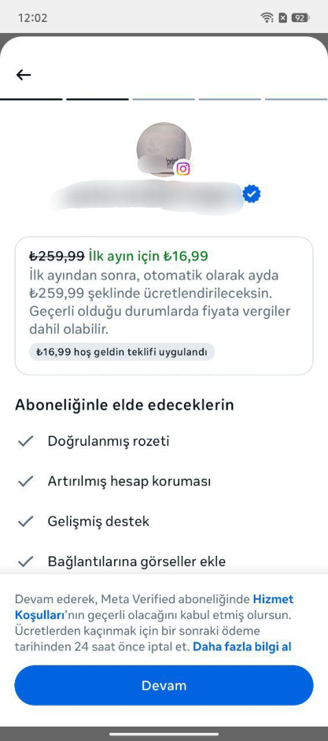 • META VERIFIED için alacak kişinin, abonelik satın aldıktan sonra: (Hesapta herhangi bir değişiklik yapılmalıdır.)