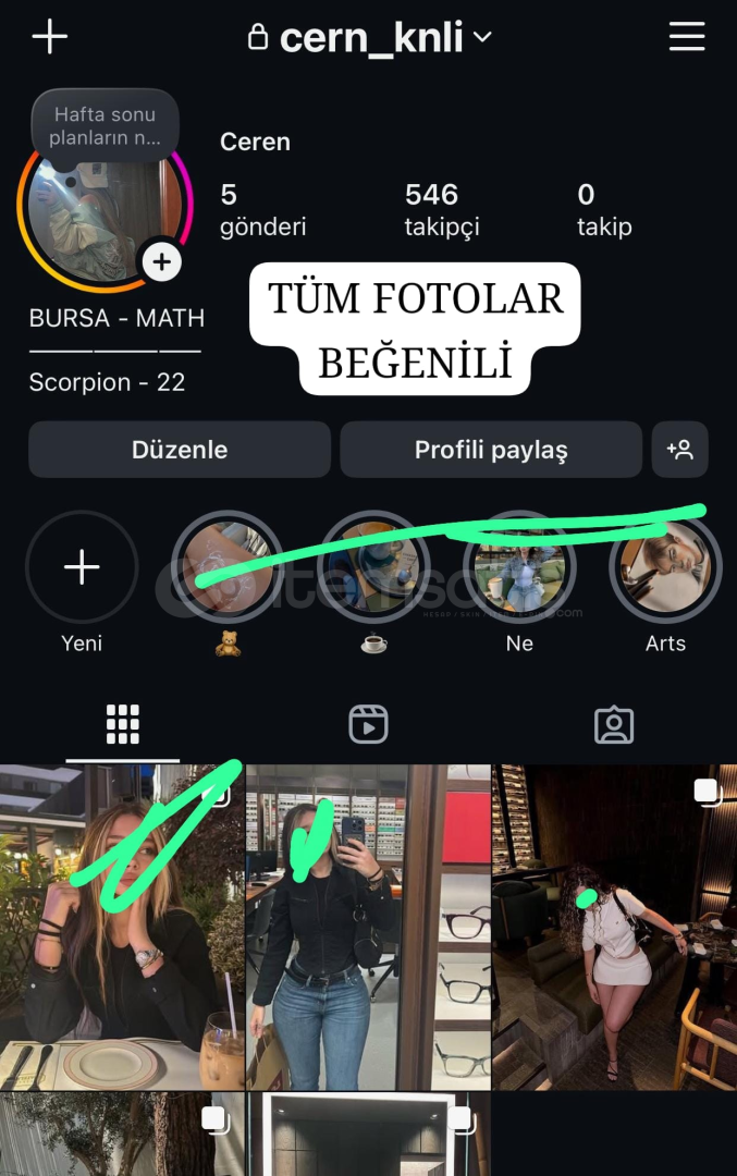 PİYASAYA YÖN VERMEYE DEVAM EDİYORUZ.------------------------------------------TAKİPÇİ SAYISI 500 ÜSTÜDÜR.----HESAP SİZLERE (MAİL ŞİFRE - KULLANICI ADI ŞİFRE )-- PİYASADA NADİR ÜRÜNLERDENDİR.----HESAP LİNKİ =''https://www.instagram.com/cern_knli'--HESAP MAĞZA HESABI OLARAK KULLANILABİLİR.----STOK SADECE 1 TANEDİR ODA RESİMDEKİ HESAPTIR ALINCA TESLİM ED...