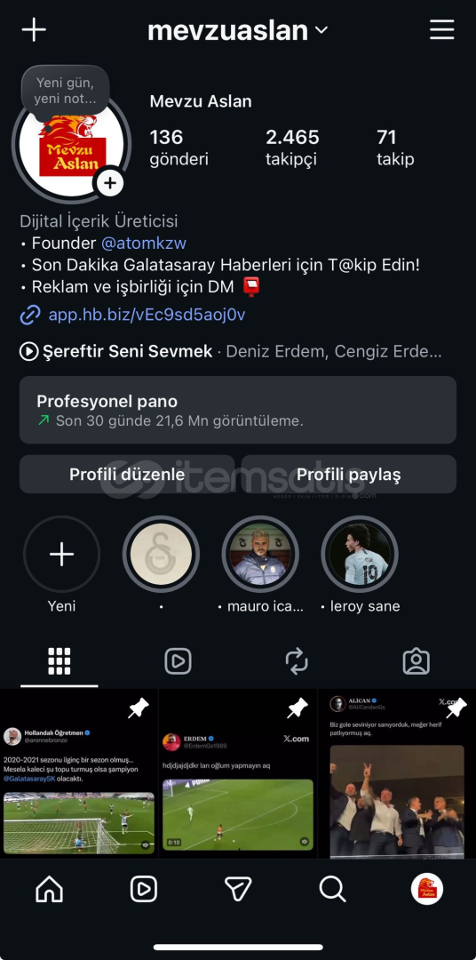 Satılık Instagram Sayfası – @mevzuaslan Tamamen organik büyütülmüş ve yüksek etkileşimli Instagram sayfası satılıktır.2.465 takipçi136 gönderiSon 30 günde 21,6 milyon görüntülenmeReels’lerde 1M–3M+ izlenmelerKeşfeti açık, algoritması oturmuş; reklam, iş birliği ve satış için hazır hesaptır.Herhangi bir kıs...