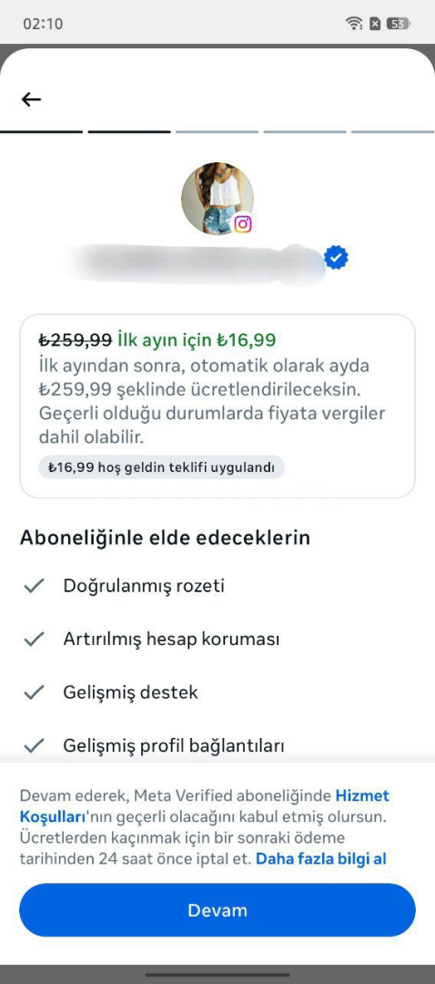 • META VERIFIED için alacak kişinin, abonelik satın aldıktan sonra: (Hesapta herhangi bir değişiklik yapılmalıdır.)