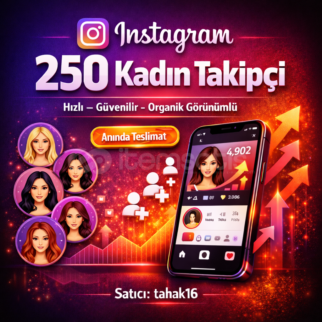 • Bu ilan satın alındığında, Instagram hesabınıza 250 KADIN takipçi gönderimi sağlanır.