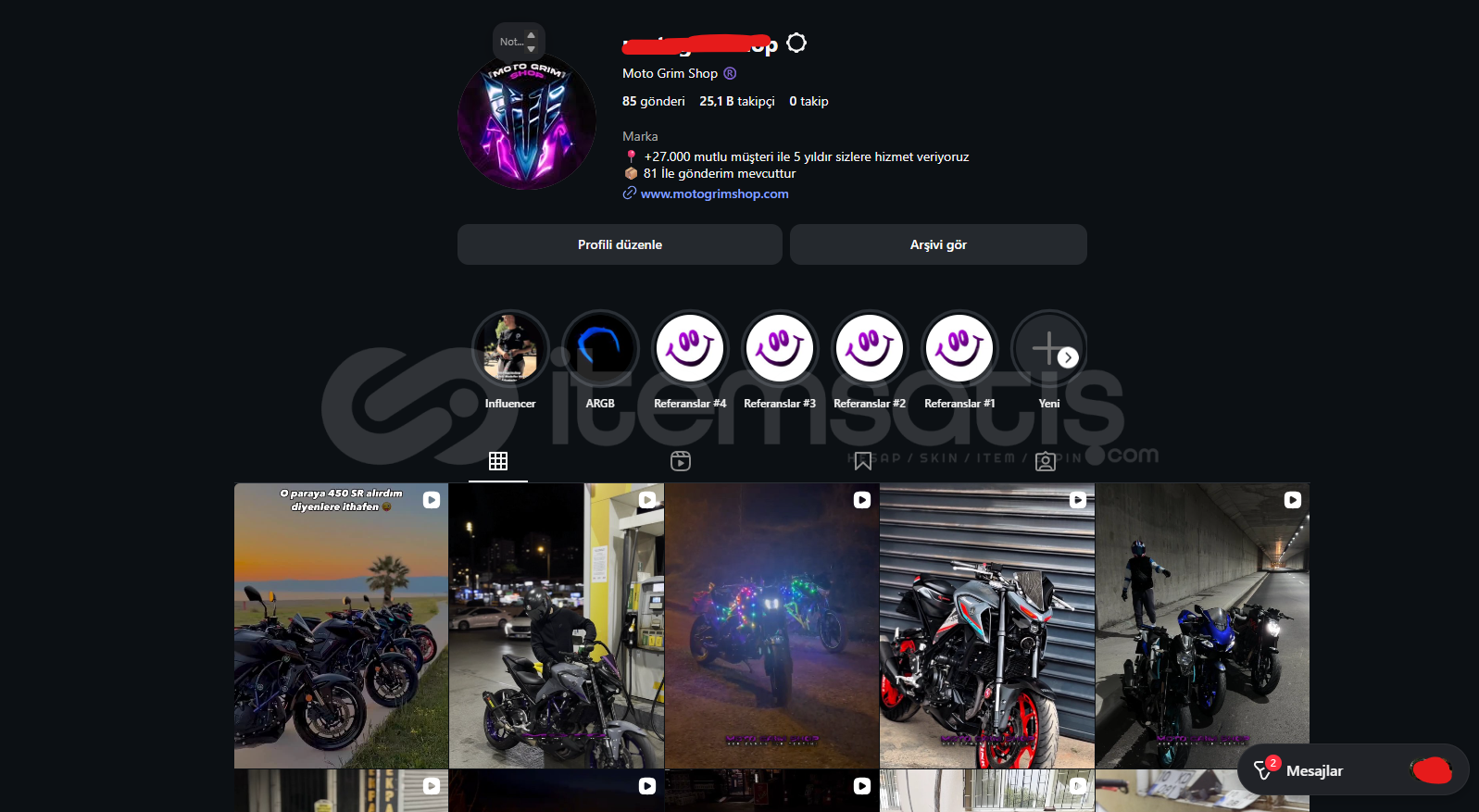 Hesap 25k takpçiye sahiptir ve bot yoktur.hesap satış hesabıdır ve 5 yıldır hesaptan motorsiklet aksesuar satışı yapılmaktadırHESABIN YANINDA İNTERNET SİTESİ, MÜŞTERİ WHATSAPP GRUBU VE TOPTANCI LİSTESİDE VERİLECEKTİR.Şuan sadece site yazılımı 10.000TL dir. Saçma sapan fiyatlar yazmayın.şirket 3 ay önce kapandığı için hesap...