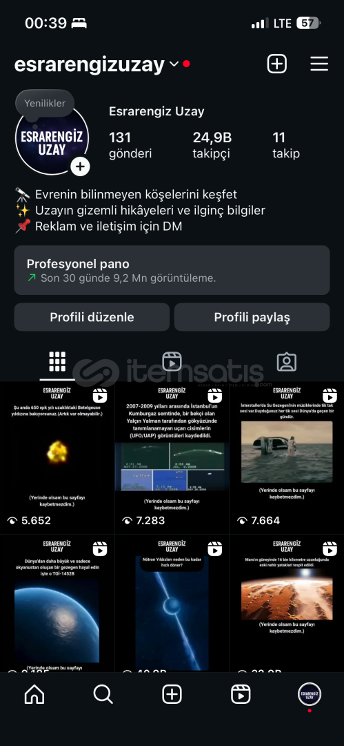 25K gerçek takipçili uzay içeriği üreten sayfa