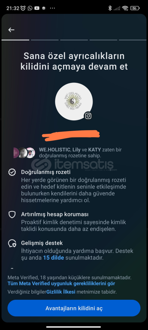 Hesapların kurulum yılları: 2015Takipçis sayısı 262 organiktir.Kurucu e-posta ve şifresi , kullanıcı adı alıcıya teslim edilir.Hesaplar sorunsuzdur; çalışır durumda teslim edilir.Hesapta meta verified açıktırToplu alım için lütfen iletişime geçin — toplu alımlarda fiyat/şartlarda indirim yapılabilir.Hesapların çoğunda keşfet ...