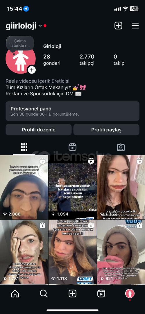 2770 TAKİPÇİLİ 1 MİLYON İZLENMELİ HESAP