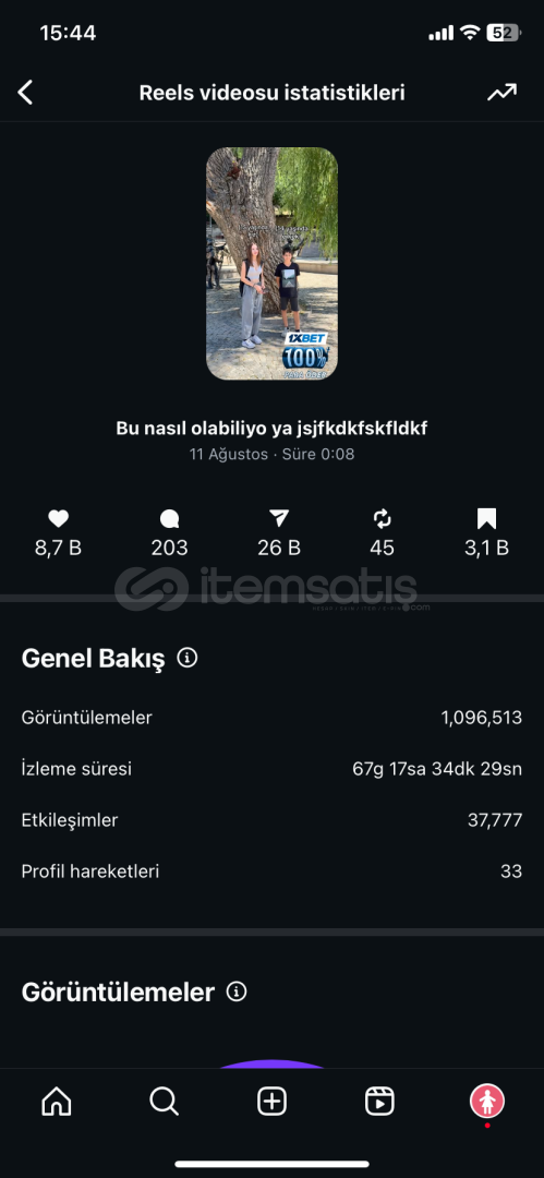 Hesap içerik üreticisi hesabıdır uzun zamandır video atamadığım için satıyorum. Ciddi alıcılar yazabilir keşfetti açıktır. Hesapta 1 milyon orijinal izlenmeli video bulunuyor.